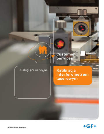 Customer Services Usługi prewencyjne GF Machining Solutions Kalibracja interferometrem laserowym KALIBRACJA INTERFEROMETREM LASEROWYM DLA ZAGWARANTOWANIA MAKSYMALNEJ DOKŁADNOŚCI OSI Machine Support + Gwarancja najwyższej precyzji procesu obróbki + Utrzymanie najwyższych tolerancji w produkcji części + Pomiary zgodne z normą VDI 3441/ ISO 230-2 Kalibracja interferometrem laserowym to najlepsza gwarancja, że maszyna obrabia z najwyższą dokładnością. Oferowana usługa prewencyjna obejmuje kilka kluczowych kroków, wykonywanych przez naszych inżynierów serwisu : Podczas oferowanej usługi serwisu prewencyjnego, inżynierowie GF Machining Solutions sprawdzą precyzję i powtarzalność pozcyjonowania liniowego Państwa frezarki, obrabiarki EDM czy maszyny do teksturowania laserowego. Wykryte odchylenia zostaną skorygowane w tabeli kompensacji zgodnie z normą VDI 3441 / ISO 230-2. W krytycznych przypadkach zarekomendujemy interwencję mechaniczną w maszynie. + Stworzenie idealnych warunków dla dokładnych pomiarów (stabilność temperatury, sprawdzenie geometrii maszyny, itd.) + Jeżeli parametry zewnętrzne wykraczają poza dopuszczalne tolerancje, zostaną określone działania konieczne do dostosowania parametrów ISO/VDI + Wydanie certyfikatu poświadczającego zgodność urządzenia z normami ISO 259.805.432 W celu zapewnienia ekstremalnej precyzji, zalecamy przeprowadzanie regularnej kontroli maszyny, a także przeprowadzenie dodatkowych kontroli w szczególnych przypadkach, np. gdy ma miejsce zmiana warunków otoczenia maszyny lub jako wsparcie certyfikacji. + Pomiar najważniejszych parametrów każdej osi za pomocą systemu laserowego: – Dokładność pozycjonowania – Odchylenie pozycjonowania – Powtarzalność pozycjonowania – Pomiar luzu zwrotnego www.gfms.com/pl All About You!