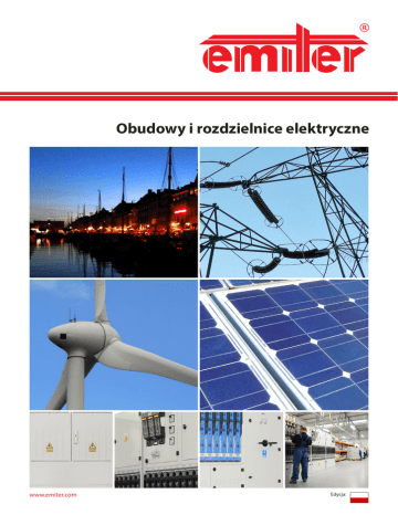 Obudowy i rozdzielnice elektryczne www.emiter.com Edycja: OBUDOWY POLIESTROWE Obudowy poliestrowe wykonane są z trudnopalnego, samogasnącego kompozytu (poliester + włókno szklane). Odznaczają się odpornością na działanie warunków atmosferycznych (UV). Z uwagi na rodzaj powierzchni zewnętrznej, obudowy występują w dwóch wersjach: gładkiej i żebrowanej. W ofercie posiadamy szeroką gamę rozmiarów szafek. Podstawowe parametry: • klasa ochronności: II • stopień ochrony obudowy: IP44, IP54, IP65, IP66 • odporność na uderzenia: IK10 • kategoria palności: V0 OS, OSZ, OSi, OSZi wymiary: - szerokość: 264, 396, 528, 660, 795, 927, 1058 mm, - wysokość: 420, 520, 620, 820 mm, - głębokość: 245 mm. możliwości instalacji: - na fundamencie, - na słupie energetycznym, - na ścianie budynku. KS, KSZ, KSi, KSZi wymiary: - szerokość: 264, 396, 528, 660, 795, 1058 mm, - wysokość: 620, 820 mm, - głębokość: 320 mm. możliwości instalacji: - na fundamencie, - na słupie energetycznym, - na ścianie budynku. OW, OWG, OWi, OWGi, OW+u, OWG+u, OWi+u, OWGi+u wymiary: - szerokość: 395 mm, - wysokość: 412, 512, 612 mm, - głębokość: 214 mm. możliwości instalacji: - w ścianie budynku, - na słupie energetycznym. LUG, LUZ wymiary: - szerokość: 274, 405, 538, 669, 804, 935, 1069 mm, - wysokość: 615, 815 mm, - głębokość: 200 mm. możliwości instalacji: - w ścianie budynku, - na ścianie. DCE 00, DCE 0, DCE 1, DCE 2 (standard DIN) wymiary: - szerokość: 460, 595, 790, 1120 mm, - wysokość: 860 mm, - głębokość: 320 mm. możliwości instalacji: - na fundamencie. DCWE 0, DCWE 1, DCWE 2 (standard DIN) wymiary: - szerokość: 605, 800, 1130 mm, - wysokość: 1140 mm, - głębokość: 320 mm. możliwości instalacji: - na fundamencie. KH 00 wymiary: - szerokość: 245 mm, - wysokość: 415 mm, - głębokość: 138 mm. możliwości instalacji: - na ścianie budynku, - w obudowie (jako zabezpieczenie główne). Maskownice MZG, MZZ wymiary: - szerokość: 572, 972 mm, - wysokość: 765, 965 mm. zastosowanie: - zabudowa złącza elektrycznego we wnęce ściany budynku. HYDRA (obudowa szczelna - IP65 / IP66) wymiary: - szerokość: 438, 616 mm, - wysokość: 618, 816 mm, - głębokość: 251, 323 mm. możliwości instalacji: - na fundamencie, - na słupie energetycznym, - na ścianie budynku. www.emiter.com STT, STTK, STTF, STTO, STOK, STOF wymiary: - szerokość: 800 mm, - wysokość: 1154 mm, - głębokość: 640 mm. możliwości instalacji: - na fundamencie, - na słupie energetycznym. 2 OBUDOWY I SZAFY METALOWE Obudowy metalowe mogą być wykonane z blachy (o grubości od 1 do 2 mm): • stalowej, • aluminiowej, • nierdzewnej, • kwasoodpornej, • Aluzinc, • Magnelis. Podstawowe parametry: • klasa ochronności: I, • stopień ochrony obudowy: IP31 - IP65, • odporność na uderzenia: IK10. OBUDOWY METALOWE OMU Obudowy uniwersalne OMK Obudowy uniwersalne podtynkowe OWW Obudowy wnętrzowe wolnostojące OMS Obudowy uniwersalne szczelne SZAFY METALOWE SU, SUJ, DSU Szafy wolnostojące SR Szafy ramowe SN Szafy elewacyjne Szafy sterownicze (uniwersalne SSU, szczelne - SSS) SUW Szafy wolnostojące wzmocnione OBUDOWY I SZAFY ROZDZIELNIC SK, SKP, SKPO Szafy złącz kablowych SWAP, SWAPO Szafy rozdzielnic wieżowych NTw Obudowy rozdzielnic nn stacji transformatorowej wnętrzowej www.emiter.com ORM Obudowy rozdzielnic modułowych ORP Obudowy rozdzielnic piętrowych Obudowy rozdzielnic modułowych uniwersalnych (natynkowe - ORMU, podtynkowe - ORMK) 3 ST, RSO Obudowy rozdzielnic nasłupowych stacji transformatorowych ORW Obudowy rozdzielnic wolnostojących ORB Obudowy rozdzielnic budowlanych PRZYKŁADY ZASTOSOWANIA OBUDÓW ZŁĄCZA KABLOWE / ZŁĄCZA KABLOWE Z POMIAREM ROZDZIELNICE NN STACJI TRANSFORMATOROWYCH Złącza kablowe służą do rozdziału i zabezpieczenia obwodów elektrycznych przed skutkami zwarć i przeciążeń. Złącza kablowe z pomiarem wykorzystywane są ponadto do zabudowy układu pomiarowego trójfazowego i zabezpieczeń licznikowych. Rozdzielnice stacji transformatorowych służą do rozdziału energii elektrycznej oraz zasilania i zabezpieczenia urządzeń w przemyśle i energetyce. ROZDZIELNICE BUDOWLANE BATERIE KONDENSATORÓW Rozdzielnic budowlanych używa się do rozdziału i pomiaru energii elektrycznej na placu budowy oraz do zasilania w energię elektryczną urządzeń pracujących w terenie. Baterie kondensatorów stosuje się do kompensacji mocy biernej w sieciach trójfazofych, czteroi pięcioprzewodowych. SZAFY STEROWNICZE TERMINALE DO ŁADOWANIA POJAZDÓW ELEKTRYCZNYCH Szafy sterownicze służą do realizacji funkcji sterowniczych. Mają zastosowanie w różnych dziedzinach przemysłu: energetycznym, maszynowym, teleinformatycznym, spożywczym i innych. Dzięki terminalom możliwe jest ładowanie akumulatorów pojazdów elektrycznych wyposażonych w ładowarkę typu „on board”. Terminale w zależności od miejsca zainstalowania mogą być wyposażone w kombinację gniazd elektrycznych jedno- i trójfazowych w różnych standardach. INNE PRZYKŁADOWE ZASTOSOWANIA Oprócz typowych rozwiązań realizujemy także zlecenia wg indywidualnych potrzeb klientów. www.emiter.com 4 KOOPERACJA Posiadamy obszerny i nowoczesny park maszynowy oraz wykwalifikowaną kadrę pracowniczą, dzięki czemu jesteśmy gotowi do podjęcia współpracy w zakresie realizacji nietypowych zleceń. NASZE MOŻLIWOŚCI Za pomocą pras hydraulicznych w ilości 45 szt. o sile nacisku do 2000 ton, mamy możliwość produkowania elementów mało- i wielkogabarytowych z tworzywa termoutwardzalnego (SMC), mających zastosowanie m.in. w: • budownictwie, • transporcie, • kolejnictwie, • przemyśle samochodowym. Wykorzystując nowoczesne wtryskarki do wtrysku tworzyw termoplastycznych oraz duroplastów (BMC), możemy zaoferować usługi w sektorach: • elektrotechnicznym, • medycznym, • opakowań, • motoryzacyjnym. Wykorzystując wolne moce prze