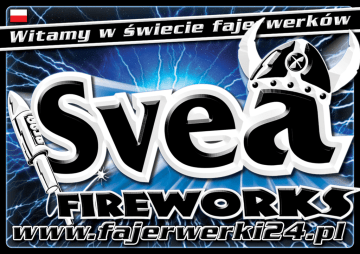 2 Dane Kontaktowe: Svea Polska Sp. z o.o. ul. Kartuska 370 80-125 Gdańsk POLSKA tel. (+48) 58 303 96 24 faks (+48) 58 732 24 73 mail: [email protected] www.fajerwerki24.pl Opiekun Klientów hurtowych: Rafał Szulc M: 512 453 904 E: [email protected] Gdańsk 3 Dlaczego SVEA ? 1993 – W Szwecji powstaje firma SVEA Fireworks która od samego początku kładzie nacisk na najwyższą jakość produktów i bezwzględne bezpieczeństwo. 1997 – SVEA Fireworks wkracza do Norwegi. Pomimo niewielkich oczekiwań, dzięki swojej polityce jakości szybko uzyskuje tytuł największego dystrybutora fajerwerków w Skandynawii. 2000 – SVEA Fireworks nareszcie pojawia się w Polsce i od razu zdobywa szerokie grono koneserów amatorskich pokazów. Naszym celem jest utrzymanie wysokiego poziomu efektów i bezpieczeństwa przy zachowaniu atrakcyjnej oferty cenowej. Rynek stawia przed nami ciągle nowe wymagania, dlatego wszyscy nasi dostawcy oraz artykuły są starannie dobierane w żmudnym procesie oceny i kontroli. Co roku dostosowujemy ofertę do życzeń Klientów dzięki ankietom i informacjom od handlowców. W Polsce mamy tylko dwa dni w roku na fajerwerkowe szaleństwo więc nie traćmy czasu na substytuty. Oto dlaczego wybraliśmy fajerwerki SVEA Fireworks. Jeżeli zależy ci na jakości i satysfakcji Klientów a fajerwerki są twoja pasją Przyłącz się do nas Svea Polska Spółka z o.o. ul. Kartuska 370 80-125 Gdańsk POLSKA . Spis Tresci Wyrzutnie Wyrzutnie HI-TECH Wyrzutnie kątowe Komplety fajerwerków Rakiety Moździerz Fontanny Rzymskie ognie Petardy Materiały reklamowe Nasze strony www Zapraszamy do współpracy Instrukcja bezpieczeństwa 4 10 12 14 15 15 16 16 16 17 18 19 20 4 WYRZUTNIE Wyrzutnie – zwane również Bateriami lub Tortami są najbardziej widowiskowymi wyrobami pirotechnicznymi a ich popularność wzrasta z roku na rok. Powoli wypierają one tradycyjne rakiety z uwagi na wygodę obsługi i bezpieczeństwo. Konstrukcja opiera się na zespole rur z ładunkiem miotającym i odpowiednio spreparowanym efektem. Są to odpowiedniki wielu rakiet połączonych jednym lontem w starannie zaplanowanej sekwencji odpalania. Czasami wzbogaca się je o dodatkowe efekty typu fontanna (372 Xerox str. 6) lub kieruje ładunki pod różnymi kątami w celu poszerzenia obszaru efektu (Wyrzutnie Kątowe str.12). UFO SHOTS RURKA TEKTUROWA PAPIEROWA ZATYCZKA EFEKT PIROTECHNICZNY LONT ZAPALAJĄCY LONT ŁĄCZĄCY LONT OPÓŹNIAJĄCY ŁADUNEK MIOTAJĄCY GLINIANE WYPEŁNIENIE Art. Nr: 301 STINGER Art. Nr: 326 WILD CATS Art. Nr: 303 Szerokość / głębokość / wysokość: 75 mm x 75 mm x 75 mm Szerokość / głębokość / wysokość: 124 mm x 95 mm x 127 mm Szerokość / głębokość / wysokość: 115 mm x 115 mm x 125 mm Opis: Mała, ale hałaśliwa wyrzutnia, wyrzucająca z niezwykłą intensywnością 36 gwiżdżących pocisków, zakończonych błękitnym rozbłyskiem na 15 metrach. Opis: Ten niepozorny tort zadziwi cię niesamowitymi efektami 18-stu manewrujących w górę rakiet, kręcących bączki. Finał z wielokolorowymi chryzantemami i piwoniami oraz naprzemiennym efektem trzaskających gwiazd na 25 metrach. Opis: 25 (szalonych) wystrzałów, które jak wściekłe koty ganiają się w powietrzu, wymachując z dzikim wyciem złocisto-srebrnymi ogonami. Pięć różnych efektów i kolorów z głośnym finałem. Ilość strzałów: 36 Średnica ładunku: 8 mm Wysokość wzbijania: ok. 10 metrów Czas trwania efektu: ok. 30 sek Masa całkowita: 250 g Waga mieszaniny pirotechnicznej: 34 g Opakowanie: 1 szt. Opakowanie Zbiorcze: 12 szt. w kartonie Ilość strzałów: 18 Średnica ładunku: 20 mm Wysokość wzbijania: ok. 20 metrów Czas trwania efektu: ok. 50 sek. Waga całkowita: 1 kg Waga netto prochu: 160 g Opakowanie: 1 szt. Opakowanie Zbiorcze: 6 szt. w kartonie Ilość strzałów: 25 Średnica ładunku: 18 mm Wysokość wzbijania: ok. 20 metrów Czas trwania efektu: ok. 30 sek. Masa całkowita: 1,3 kg Waga mieszaniny pirotechnicznej: 140 g Opakowanie: 1 szt. Opakowanie Zbiorcze: 6 szt. w kartonie 5 EXPLOSIVE Art. Nr: 230-1 Szerokość / głębokość / wysokość: 120 mm x 120 mm x 120 mm Opis: 25 intensywnych wystrzałów z niebieską poświatą i srebrnymi ogonami, zakończonych głośną detonacją w kolorze czerwonym i zielonym na 20 metrach. Małe rozproszenie i równe tempo efektów. Ilość strzałów: 25 Średnica ładunku: 18 mm Wysokość wzbijania: ok. 20 metrów Czas trwania efektu: ok. 30 sek. Masa całkowita: 1 kg Waga mieszaniny pirotechnicznej: 100 g Opakowanie: 1 szt. Opakowanie Zbiorcze: 12 szt. w kartonie STARBURST Art. Nr: 301 Szerokość / głębokość / wysokość: 130 mm x 130 mm x 155 mm Opis: 25 wystrzałów w kolorach czerwonym, zielonym, niebieskim i złotym, zakończonych eksplodującymi z trzaskiem gwiazdkami na 20 metrach. Ilość strzałów: 25 Średnica ładunku: 20 mm Wysokość strzałów: ok. 20 metrów Czas trwania efektu: ok. 30 sek Waga całkowita: 1,5 kg Waga netto prochu: 260 g Opakowanie: 1 szt. Opakowanie Zbiorcze: 6 szt. w kartonie POWER Art. Nr: 320 MEGA BLAST Art. Nr: 246 Szerokość / głębokość / wysokość: 130 mm x 145 mm x 150 mm Szerokość / głębokość / wysokość: 155 cm x 115 cm x 115 mm Opis: Zaskakująco wydajna wyrzutnia z najlepszymi efektami w 19 mieszanych wystrzałach. Różnobarwne efekty: małe, srebrne wiry, złociste palmy i niebieskie drzewka z uciekającymi kometami oraz chmurą srebrnych rozbłysków. Opis: 35 kolorowych efektów z mocnymi srebrnymi akcentami, migoczący złoto finał. Wszystko to w obłędnym tempie przy chórze przeciągłych gwizdów. Ilość strzałów: 19 Średnica ładunku: 23 mm Wysokość wzbijania: ok. 25 metrów Czas trwania efektu: ok. 35 sek. Masa całkowita: 1,5 kg Waga mieszaniny pirotechnicznej: 190 g Opakowanie: 1 szt. Opakowanie Zbiorcze: 6 szt. w kartonie Ilość strzałów: 35 Średnica ładunku: 18 mm Wysokość wzbijania: ok. 20 metrów Czas trwania efektu: ok. 30 sek. Masa