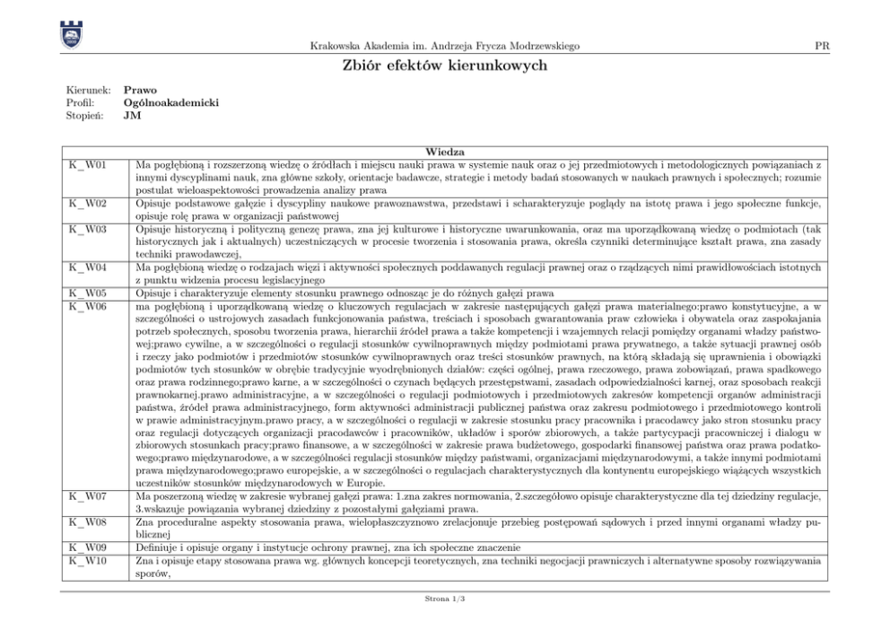 Zbiór efektów kierunkowych - Krakowska Akademia im Andrzeja