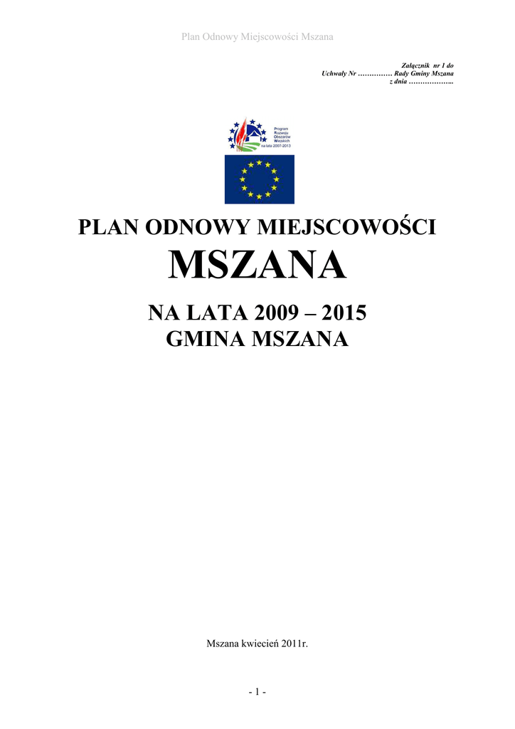 plan odnowy miejscowości mszana na lata 2009 – 2015 gmina
