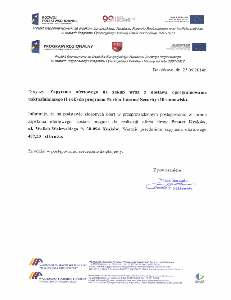 Za udzial w postgpowaniu serdecznie dzigkujemy.