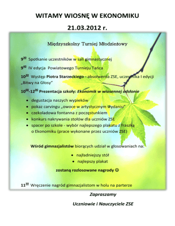 WITAMY WIOSNĘ W EKONOMIKU 21.03.2012 r.