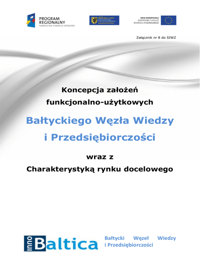 Załącznik nr 8 do SIWZ Koncepcja założeń funkcjonalno-użytkowych Bałtyckiego Węzła Wiedzy i Przedsiębiorczości wraz z Charakterystyką rynku docelowego Bałtycki Węzeł Wiedzy i Przedsiębiorczości 1. DANE OGÓLNE 1.1. Nazwa Inwestycji Projekt koncepcyjny jednostki pod nazwą: „Bałtycki Węzeł Wiedzy i Przedsiębiorczości” - będącej widoczną dla całego regionu, nowoczesną przestrzenią służącą intensyfikowaniu działalności innowacyjnej, której brakuje dziś w już funkcjonujących obiektach w Metropolii oraz wspierającą działalność biznesowo – naukową, przyjazną dla nowych modeli edukacyjno-biznesowych, otwartą na twórcze, samodzielne myślenie i obserwowanie świata. 1.2. Adres Ze względu na priorytet, jakim jest usytuowanie obiektu w pobliżu działających w Metropolii uczelni, ale również potencjał innowacji drzemiący w uczelniach wyższych a w szczególności Politechniki Gdańskiej i Gdańskiego Uniwersytetu Medycznego rozważane są dwie lokalizacje: obiekt dawnego budynku Wydziału Chemii UG przy ul. Sobieskiego, co pozwoliłoby zrealizować także cel rewitalizacyjny niezabudowany teren przy ul. Traugutta w bezpośrednim sąsiedztwie Wydziału Zarządzania i Ekonomii Politechniki Gdańskiej 1.3. Zamawiający InnoBaltica Sp. z o.o. 80-172 Gdańsk ul. Trzy Lipy 3 1.4 Słownik pojęć Spin off - przedsiębiorstwo wydzielone z placówek naukowych, których celem jest komercjalizacja technologii i transfer wiedz. Jest to element przedsiębiorczości akademickiej. Do najważniejszych cech charakterystycznych tego typu Bałtycki Węzeł Wiedzy i Przedsiębiorczości przedsięwzięć, należy zaliczyć udział pracowników instytucji, korzystanie z technologii wytworzonej w instytucji naukowej, udział studentów, doktorantów, naukowców lub absolwentów wśród założycieli. Spin out - przedsiębiorstwo wydzielone z od spółki dominującej, części przedsiębiorstwa, które staje się niezależna. Spółka docelowa otrzymuje część majątku, praw własności intelektualnej i patentów, technologii oraz klientów od spółki dominującej. Start up - firma lub tymczasowa organizacja stworzona w stworzona w celu o budowania nowych produktów lub usług w warunkach dużej niepewności. Start up to firma która jest w fazie rozwojowej i aktywnie poszukuje nowych rynków. Przedsiębiorstwa start-up powstać mogą w dowolnej branży, jednak najczęściej związane są z nowymi technologiami. Charakterystyczne dla nich są niskie koszty rozpoczęcia działalności i wyższe niż w przypadku "standardowych", „typowych” przedsięwzięć ryzyko, R&D - prace badawczo-rozwojowe z języka angielskiego Research and Development inne stosowane określenia to B&R i B+R. Są to systematycznie prowadzone prace rozwojowe obejmujące nabywanie, łączenie, kształtowanie i wykorzystywanie dostępnej aktualnie wiedzy i umiejętności z dziedziny nauki, technologii i działalności gospodarczej oraz innej wiedzy i umiejętności do planowania produkcji oraz tworzenia i projektowania nowych, zmienionych lub ulepszonych produktów, procesów lub usług.1 Business cafe/Network Cafe umowna nazwa dla przestrzeni kawiarnianych umożliwiających spotkania biznesowe w swobodnej atmosferze oraz organizację małych spotkań biznesowych i spotkań z przedsiębiorcami lub naukowcami. 1 http://stat.gov.pl/cps/rde/xbcr/wroc/ASSETS_Dzialalnosc_badawcza_i_rozwojowa.pdf Bałtycki Węzeł Wiedzy i Przedsiębiorczości 2. CEL OPRACOWANIA Celem opracowania jest wskazanie założeń funkcjonalno-użytkowych określających przedsięwzięcie i uwarunkowania jego realizacji, stanowiące bazę i punkt wyjścia do dalszych działań. Bałtycki Węzeł Wiedzy i Przedsiębiorczości 3. IDEA BAŁTYCKIEGO WĘZŁA WIEDZY I INNOWACJI W chwili obecnej w obszarze wspierania rozwoju start-upów zaobserwować można funkcjonowanie kilku grup podmiotów oferujących wsparcie kapitałowe, doradztwo czy przestrzeń inkubacyjną, jednakowoż efekty działania tego „systemu” w pełni nie odzwierciedlają potencjału jaki jest w Metropolii – i jaki będzie się powiększać w najbliższych latach. Jest to wynikiem następujących luk jakie, w tym „systemie” istnieją: brak kompleksowych rozwiązań oferujących wsparcie dla start-upów pakietowo w zakresie zarówno przestrzeni biznesowej, coachingu i doradztwa oraz zasilenia kapitałowego; brak dostosowania oferty, zwłaszcza inwestorów, do wsparcia potrzeb start-upów / potencjalnych start-upów od najwcześniejszego etapu inkubacji pomysłu; niedopasowania (finansowanie oferty z inwestorskiej innych krajów) do oraz konkurencyjnych koncentracja na alternatyw finansowaniu zawansowanych przedsięwzięć, przy braku oferty dla przedsięwzięć na wczesnym etapie inkubacji. InnoBaltica podejmuje dwutorowe działania mające przynieść pełniejsze wykorzystanie potencjału sektora start-upów. Z jednej strony, poprzez budowę zaplecza inkubacyjnego z kompleksowym otoczeniem usług, środowiskiem biznesowym (Bałtycki Węzeł Wiedzy i Przedsiębiorczości), aż po pierwsze finansowanie, tworzymy warunki do zwiększenia podaży pomysłów przekształcających się w start-upy. Jednocześnie, z drugiej strony, poprzez instrumenty finansowe (Fundusz pre-seed i seed capital) i dostęp do kapitału, wzbogacamy stronę popytową na inicjatywy start-upowe - zwłaszcza te, znajdujące się w najwcześniejszym okresie inkubacji, które dotychczas nie były przedmiotem zainteresowania krajowych inwestorów. Przewagą konkurencyjną spółki w przypadku uruchomienia własnego funduszu o charakterze pre-seed jest stosunkowo niskie ryzyko inwestycyjne wynikające z dobrej znajomości projektów i projektodawców, związane z uczestniczeniem spółki w procesie inspiracji i Bałtycki Węzeł Wiedzy i Przedsiębiorczości rozwoju koncepcji tych projektów. Szczególnie, kiedy weźmiemy pod uwagę możliwość rozwoju tych projektów pod okiem ekspe