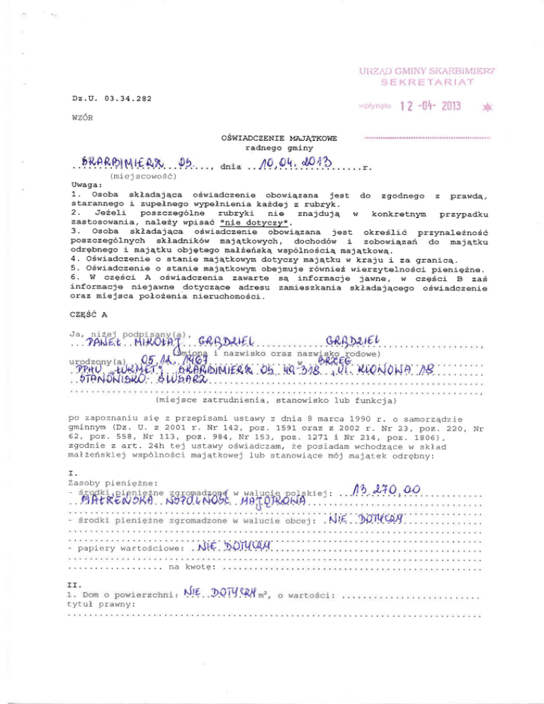 informacje niejawne dotycz4ce adresu zamieszkania sktadal4cego o6wiad.czenj-e