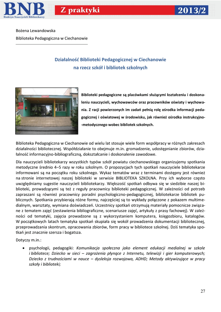 Działalność Biblioteki Pedagogicznej w Ciechanowie na rzecz szkół