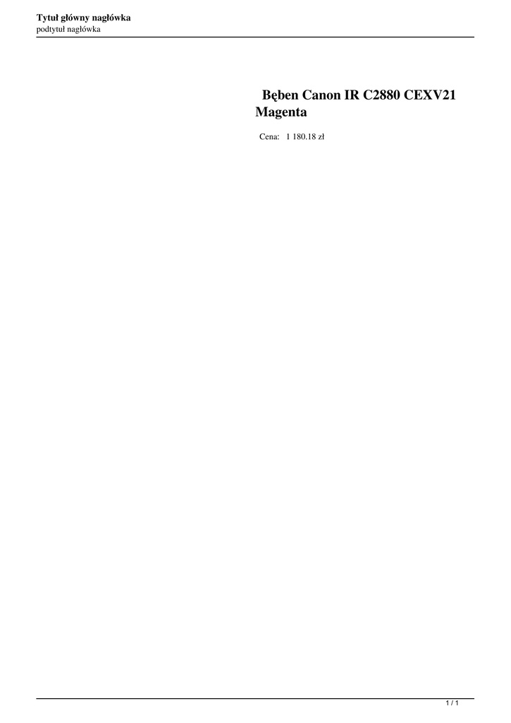 Tytuł główny nagłówka podtytuł nagłówka Bęben Canon IR C2880 CEXV21 Magenta Cena: 1 180.18 zł 1/1 Powered by TCPDF (www.tcpdf.org)