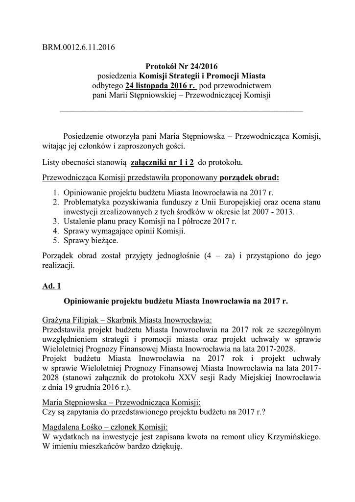 BRM.0012.6.11.2016 Protokół Nr 24/2016 posiedzenia Komisji