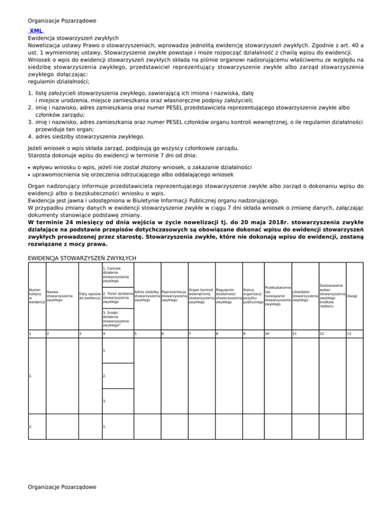 Organizacje Pozarządowe Organizacje Pozarządowe XML