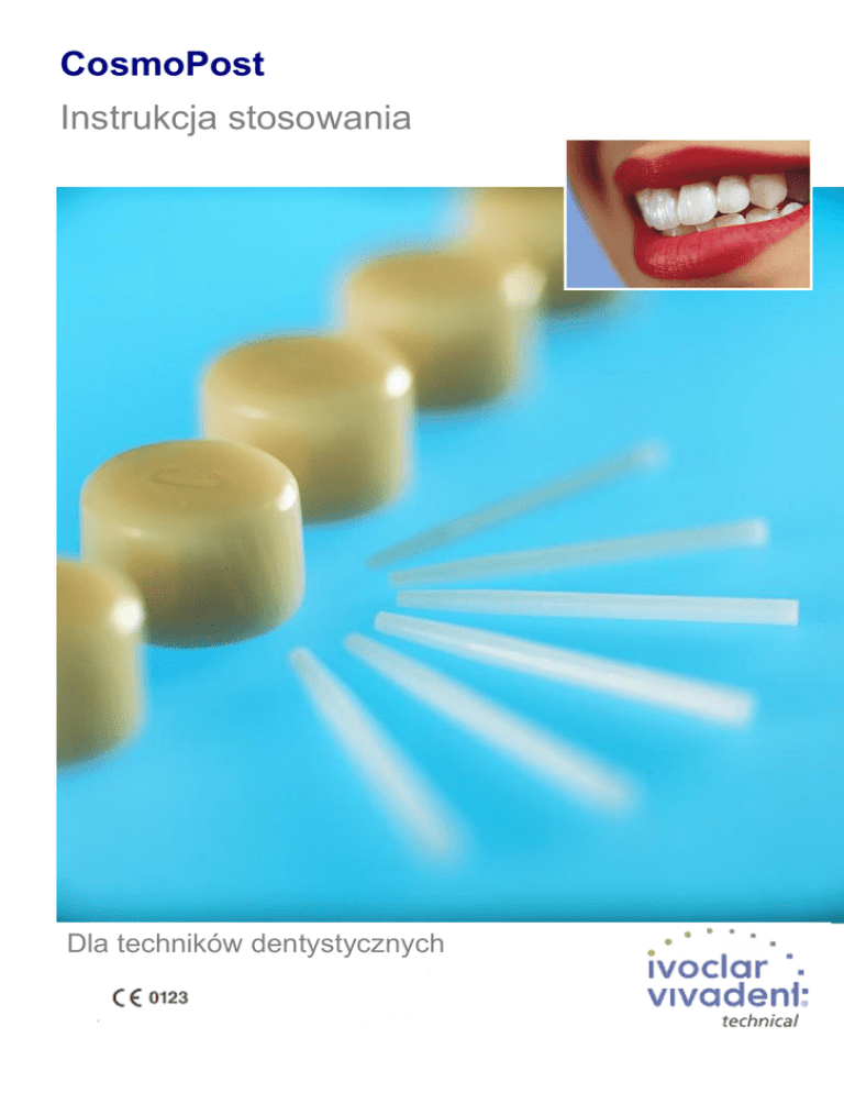 CosmoPost Instrukcja stosowania Dla techników dentystycznych IPS Empress Cosmo Ingot Wskazania Sposób postępowania Materiał przeznaczony do odbudowy na wkładach koronowo-korzeniowych CosmoPost jednolicie ceramicznej korony zęba pod uzupełnienie protetyczne. Wycisk z wkładem wyciskowym Przekazany do pracowni wycisk z dobranym w odpowiednim rozmiarze wkładem wyciskowym. Przeciwwskazania - Nie wolno stosować z stopami metali, ceramiką na metalu (np.: IPS Classic, IPS d.SIGN) oraz ceramiką bez metalu (np.: IPS Empress / 2). - Pastylek systemu IPS Empress nie wolno stosować z pastylkami IPS Empress Cosmo Ingot. - Przy stwierdzonej alergii na jakikolwiek składnik materiału. Skład Przygotowanie modelu Materiał IPS Empress Cosmo Ingot zbudowany jest ze szkła ceramicznego zawierającego tlenek cyrkonu. Głównymi składnikami budowy jest ZrO2 i SiO2. Dodatkowo zawiera Al2O3, P2O5, Li2O, Na2O, K2O, F oraz pigmenty. Należy sprawdzić, przez przyłożenie nacisku na wkład, właściwy sposób dopasowania wkładu wyciskowego do wycisku. Wystającą część wkładu wyciskowego z wycisku należy pokryć materiałem izolującym IPS Empress Die Material Separating Liquid. Zabezpiecza to gips lub inny materiał do wykonywania modeli przed przyklejaniem się do wkładu. Wykonać model gipsowy. Upewnić się, że model gipsowy został zdjęty z wycisku zgodnie z kierunkiem zamocowania wkładów wyciskowych. Sprawdzić dopasowanie wkładów wyciskowych do wykonanego modelu. 2 Mocowanie kanałów woskowych Przygotowanie do modelowania Zdjąć wymodelowaną odbudowę na wkładzie z modelu i usunąć wszelkie nierówności. W przypadku widocznych nadmiarów materiału izolującego, należy go usunąć. Zamocować kanał odlewniczy w kierunku płynięcia ceramiki w najgrubszym punkcie (użyć wosk o przekroju okrągłym, o średnicy 2,5-3 mm w zależności od rozmiaru podbudowy). Ostrożnie przy użyciu kleszczy wyjąc wkład z modelu delikatnymi ruchami obrotowymi. Zaznaczyć granicę preparacji. Zaleca się pokryć model uszczelniaczem (np. Margidur firmy Benzer) i pozostawić do wyschnięcia. Po uszczelnieniu modelu, nałożyć dwie warstwy lakieru dystansowego na powierzchnię siodła. Po około 5 minutach pokryć model materiałem izolującym (np. Die-Lub firmy Dentaurum) i dokładnie rozprowadzić przy użyciu sprężonego powietrza. Wprowadzić wkład w odpowiednim rozmiarze. Ważne Odległość pomiędzy tłoczonymi obiektami musi wynosić przynajmniej 3 mm. Odległość pomiędzy tłoczonymi obiektami i ścianami pierścienia z masy osłaniającej musi wynosić przynajmniej 10 mm. Należy usunąć nadmiar materiału do izolacji. Podczas mocowania kanałów woskowych, należy wziąć pod uwagę kierunek płynięcia porcelany. Dodatkowo, bardzo małe prace należy umieszczać w pierścieniu z masą osłaniającą wraz z dodatkowo wykonanym ślepym kanałem woskowym. Pozwala to na równomierne rozłożenie sił podczas tłoczenia masy ceramicznej. Zatapianie w masie osłaniającej Sprawdzić dopasowanie wkładu CosmoPost do modelu, obracając go delikatnie. Ostrożnie usunąć nadmiar lakieru dystansowego. Zatopić obiekty w masie osłaniającej IPS Empress 2 Special Investment Material lub IPS Empress 2 Speed Investment Material. Modelowanie Ważne Nie wolno stosować środków zmniejszających napięcie powierzchniowe. Należy przestrzegać Instrukcji Stosowania IPS Empress 2 Special Investment Material lub IPS Empress 2 Speed Investment Material. Nie wolno stosować masy osłaniającej IPS Empress Special Investment Material przygotowanej w proporcjach zalecanych w technice nakładania. Przestrzegać czasu mieszania. Sprawdzić dopasowanie pierścienia papierowego do podstawy i pierścienia stabilizującego Modelowanie przeprowadzić przy użyciu wosku, który wypala się bez pozostałości. Podczas modelowania należy wziąć pod uwagę planowany sposób opracowania pozostałych twardych tkanek zęba. Przy opracowaniu ze stopniem, odbudowana korona zęba pod uzupełnienie powinna kończyć się około 1 mm przed brzegiem preparacji. Zatapianie w IPS Empress 2 Special Investment Material Ważne Długości wkładów nie wolno zmieniać przed wykonaniem podbudowy. Mogą być skracane dopiero do długości odbudowanej korony zęba. Wkład jest przez to stabilny w pierścieniu podczas zatapiania. Unika się przez to błędów w tłoczeniu. Dodatkowo, bardzo małe prace należy umieszczać w pierścieniu z masą osłaniającą wraz z dodatkowo wykonanym ślepym kanałem woskowym. 3 Wskazania Stężenie Odbudowa korony zęba w połączeniu z CosmoPost 50-60% Mały pierścień (100 g) płyn : woda destylowania 11 ml:11 ml (50%) 13 ml:9 ml (60%) Duży pierścień (200 g) płyn : woda destylowana 22 ml:22 ml (50%) 26,5 ml:17,5 ml (60%) Tłoczenie Zatapianie w IPS Empress 2 Speed Investment Material Wskazania Stężenie Odbudowa korony zęba w połączeniu z CosmoPost 40-50% Mały pierścień (100 g) płyn : woda destylowania 11 ml:16 ml (40%) 13,5 ml:13,5 ml (50%) Wyjąć pierścień z pieca do wyżarzania i włożyć zimny bloczek IPS Empress Cosmo Ingot do pierścienia. Duży pierścień (200 g) płyn : woda destylowana 22 ml:32 ml (40%) 27 ml:27 ml (50%) Stosując masę IPS Empress 2 Speed Investment Material należy pamiętać o odpowiednio wcześniejszym włączeniu pieca. Następnie włożyć do pierścienia tłoczek AlOx. Ważne Masa osłaniająca zawiera proszek kwarcowy. Unikać wdychania pyłu, ponieważ długotrwałe wdychanie może doprowadzić do choroby płuc Wyżarzanie pierścienia z masą osłaniającą Należy wyżarzyć pierścień z masą osłaniającą z tłoczkiem AlOx ale bez bloczka w tradycyjnym piecu do wyżarzania. Należy przestrzegać Instrukcji Stosowania IPS Empress 2 Special Investment Material lub IPS Empress 2 Speed Investment Material. Pierścień z bloczkiem IPS Empress Cosmo Ingot i tłoczkiem przenieść do uprzednio nagrzanego do temperatury 600 C pieca 