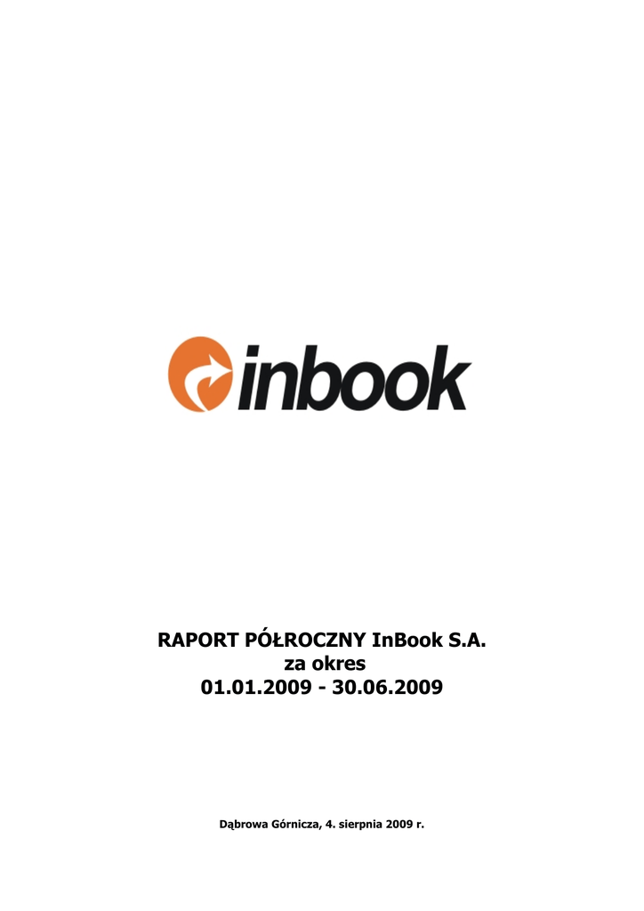 RAPORT PÓŁROCZNY InBook S.A. za okres 01.01.2009 - 30.06.2009 Dąbrowa Górnicza, 4. sierpnia 2009 r. Raport półroczny 2009 za okres 01.01.2009 - 30.06.2009 1. WYBRANE DANE FINANSOWE Przychody ze sprzedaŜy Zysk (strata) ze sprzedaŜy Zysk (strata) na działalności operacyjnej Zysk (strata) brutto Zysk (strata) netto Przepływy pienięŜne netto z działalności operacyjnej Przepływy pienięŜne netto z działalności inwestycyjnej Przepływy pienięŜne netto z działalności finansowej Przepływy pienięŜne netto razem Aktywa razem Zobowiązania i rezerwy na zobowiązania Kapitał (fundusz) akcyjny Kapitał własny Liczba akcji 2. w tys. półrocze 2009 okres od 200901-01 do 200906-30 386 8 9 9 8 11 EUR półrocze 2008 okres od 200801-01 do 200806-30 417 -14 -8 -7 -7 - -210 - -47 - -7 - -2 - -168 1825 639 528 1186 52778 919 334 500 585 50000 -38 408 143 118 265 - 274 100 149 175 - INFORMACJE ORGANIZACYJNE 2.1 Spółka 2.1.1 Informacje podstawowe Firma Kraj siedziby Siedziba Adres Telefon Fax E-mail strona internetowa NIP REGON KRS 2.1.2 w tys. zł półrocze półrocze 2009 2008 okres okres od 2009od 200801-01 01-01 do 2009do 200806-30 06-30 1726 1456 35 -47 41 -27 42 -24 34 -24 48 - InBook Spółka Akcyjna Polska Dąbrowa Górnicza Ul. Osiedle Robotnicze 6, 42-520 Dąbrowa Górnicza 0 801 000 785, 032 268 64 05 032 268 64 05 [email protected] www.inbook.com.pl 6292195774 277501658 0000310188 Informacja o rejestracji Spółka jest zarejestrowana w rejestrze przedsiębiorców Krajowego Rejestru Sądowego, prowadzonym przez Sąd Rejonowy Katowice Wschód w Katowicach, Wydział VIII Gospodarczy Krajowego Rejestru Sądowego, pod numerem KRS 0000310188. Spółka została wpisana do rejestru przedsiębiorców Krajowego Rejestru Sądowego w dniu w dniu 5 sierpnia 2008 r. 2 Raport półroczny 2009 za okres 01.01.2009 - 30.06.2009 2.1.3 Kapitał zakładowy Na dzień 30 czerwca 2009 r. kapitał zakładowy Spółki wynosił 527 783 zł. Kapitał zakładowy dzielił się na 52 778 300 akcji, w tym 30 000 000 akcji imiennych uprzywilejowanych co do głosu (dwa głosy na akcję) serii A o wartości nominalnej 0,01 zł, 20 000 000 akcji zwykłych na okaziciela serii B o wartości nominalnej 0,01 zł i 2 778 300 akcji zwykłych na okaziciela serii C o wartości nominalnej 0,01 zł. 2.1.4 Przedmiot działalności Szczegółowy zakres działalności Spółki określa §2 Statutu Spółki. Wiodącym przedmiotem działalności spółki są: • sprzedaŜ detaliczna ksiąŜek, gazet, artykułów piśmienniczych, zegarków, gadŜetów, sprzętu audiowizualnego, nagrań dźwiękowych i audiowizualnych oraz biŜuterii prowadzona przez domy sprzedaŜy wysyłkowej lub Internet, • prowadzenie serwisów internetowych inbook.pl oraz timex24.pl, casiomarket.pl, citizen.pl, timemaster.pl, e-zegarki.pl, cud.pl, goldmarket.pl i foteria.pl. 2.2 Władze Spółki 2.2.1 Walne Zgromadzenie Akcjonariuszy Na dzień 30 czerwca 2009 r. w skład akcjonariatu InBook S. A. wchodzili: Lp. 1 2 3 4 Akcjonariusz Mariusz Dąbrowski Jakub Dębski Inwest Connect S.A. Pozostali % akcji 28,42% 28,42% 18,95% 24,21% % głosów 36,24% 36,24% 12,08% 15,44% Źródło: Spółka 2.2.2 Zarząd Zasady powoływania oraz działania Zarządu Spółki określają §§ 6,7,8 Statutu Spółki oraz Kodeks Spółek Handlowych w zakresie nieuregulowanym przepisami Statutu Spółki. Zgodnie z postanowieniami Statutu Zarząd Spółki liczy od jednego do trzech członków. Członków Zarządu powołuje i odwołuje Rada Nadzorcza. Powołując Zarząd, Rada ustala liczbę członków i ich funkcje. Kadencja Zarządu trwa trzy lata. W przypadku Zarządu wieloosobowego kadencja jest wspólna. Członkowie Zarządu mogą być powoływani ponownie na dalsze kadencje. Działalnością Zarządu kieruje Prezes Zarządu. Zasady funkcjonowania Zarządu Spółki oraz zasady wynagradzania członków Zarządu określa Regulamin uchwalony przez Radę Nadzorczą. KaŜdy członek zarządu ma prawo do samodzielnej reprezentacji Spółki. Na dzień 30 czerwca 2009 r. w skład Zarządu wchodzili: Imię i Nazwisko Funkcja Mariusz Dąbrowski Prezes Zarządu Jakub Dębski Wiceprezes Zarządu Źródło: Spółka Kadencja członków Zarządu upływa sprawozdanie finansowe za rok 2010. po odbyciu 3 Walnego Zgromadzenia zatwierdzającego Raport półroczny 2009 za okres 01.01.2009 - 30.06.2009 2.2.3 Rada Nadzorcza Zasady powoływania oraz działania Rady Nadzorczej Spółki określają §§9,10,11,12 Statutu Spółki oraz Kodeks Spółek Handlowych w zakresie nieuregulowanym przepisami Statutu Spółki. Zgodnie z postanowieniami Statutu Rada składa się z 5 do 7 członków, których wybiera Walne Zgromadzenie. Kadencja Rady Nadzorczej trwa 3 lata. Członków Rady Nadzorczej powołuje się na okres wspólnej kadencji. Członkowie Rady Nadzorczej mogą być powoływani ponownie na dalsze kadencje. Członkowie Rady Nadzorczej wykonują swoje prawa i obowiązki osobiście i w sposób łączny. Członkowie Rady Nadzorczej otrzymują wynagrodzenie ustalone na dany rok przez Walne Zgromadzenie Akcjonariuszy. Posiedzenia Rady odbywają się w miarę potrzeb, nie rzadziej jednak niŜ 3 razy w roku. Rada jest zdolna do podejmowania uchwał, jeŜeli na posiedzeniu jest obecna co najmniej połowa jej członków, a wszyscy członkowie zostali zaproszeni. Uchwały zapadają bezwzględną większością głosów, chyba Ŝe Statut albo Regulamin Rady Nadzorczej stanowią inaczej. Na dzień 30 czerwca 2009 r. w skład Rady Nadzorczej powołanej uchwałą WZA z dnia 17 czerwca 2008 r. wchodzili: Imię i Nazwisko Iwona Chometa Albin Wabiszczewicz Katarzyna Pachulska Maciej Dębski Mariusz Biernacki Adam Łanoszka* * powołany 14 sierpnia 2008 r. Funkcja Członek Rady Członek Rady Członek Rady Członek Rady Członek Rady Członek Rady Nadzorczej Nadzorczej Nadzorczej Nadzorczej Nadzorczej Nadzorczej Kadencja członków Rady Nadzorczej upływa po odbyciu Walnego Zgromadzenia zatwierdzającego spr