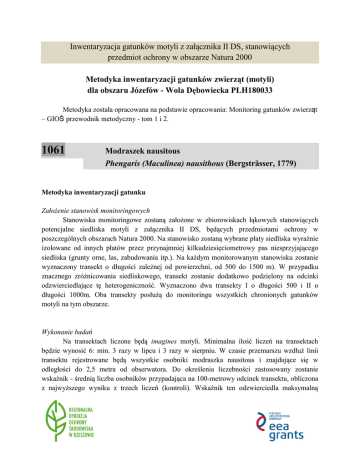 Inwentaryzacja gatunków motyli z załącznika II DS, stanowiących