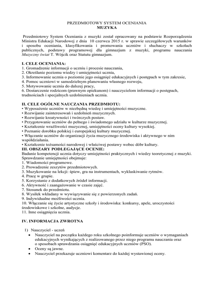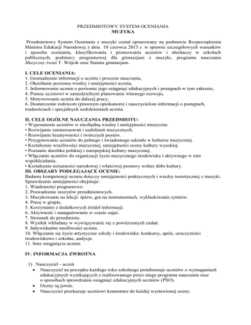 PRZEDMIOTOWY SYSTEM OCENIANIA MUZYKA Przedmiotowy