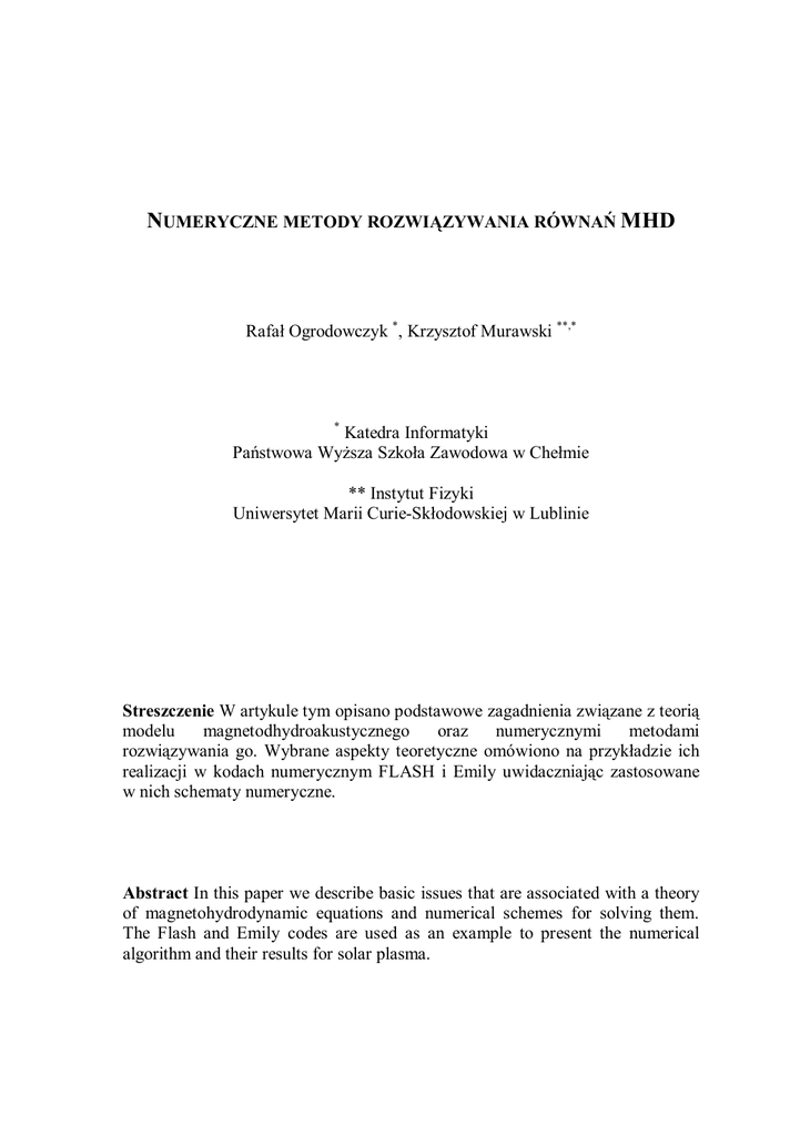NUMERYCZNE METODY ROZWIĄZYWANIA RÓWNAŃ MHD Rafał