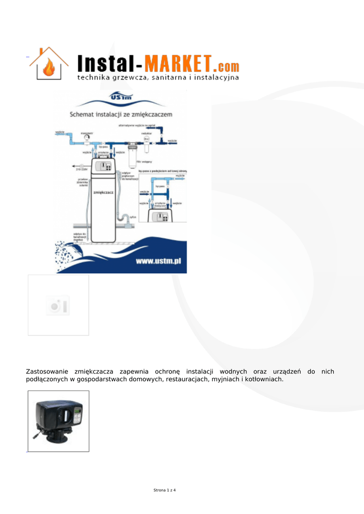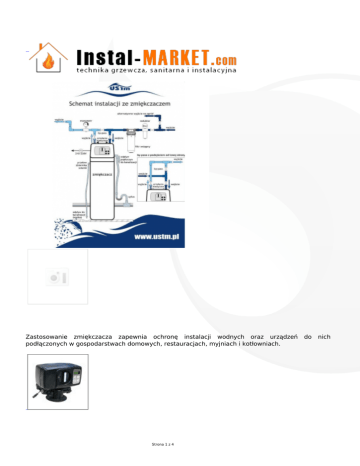 Zastosowanie zmiękczacza zapewnia ochronę instalacji wodnych oraz urządzeń podłączonych w gospodarstwach domowych, restauracjach, myjniach i kotłowniach. Strona 1 z 4 do nich Oferowane zmiękczacze są urządzeniami kompaktowymi, z całkowicie automatyczną, elektroniczną głowicą czasowo-objętościową. Wyposażone są w by-pass pozwalający na łatwy montaż i demontaż urządzenia. Posiadają atest PZH. Podstawowe zalety zastosowania zmiękczacza to: zmniejszenie awaryjności urządzeń, sprzętów gospodarstwa domowego, części maszyn i instalacji wodnej, zmniejszenie zużycia energii ze względu na brak kamienia kotłowego, wyeliminowanie kamienia na armaturze, w czajniku, ekspresie i wielu innych urządzeniach, poprawa smaku napojów i potraw, efektywniejsze i bardziej ekonomiczne pranie, zmywanie oraz kąpiel, mniej podrażniona i wysuszona skóra oraz włosy. Zimna woda zasilająca przepływa przez specjalne złoże filtracyjne (żywicę jonowymienną), które powoduje wymianę jonów wapnia i magnezu, odpowiadających za twardość wody, na jony sodu. Zasada działania zmiękczacza: Strona 2 z 4 Dzięki temu zostaje zmniejszony stopień twardości wody. Żywica jonowymienna traci stopniowo swoją wydajność, dlatego też musi być poddawana automatycznej regeneracji przy użyciu solanki (nasycony roztwór NaCl i wody). Wykorzystywane są do tego tabletki soli wsypane wcześniej do obudowy zmiękczacza i uzupełniane ok. raz w miesiącu. Za prawidłową regenerację odpowiada elektroniczny sterownik, będący integralną częścią zmiękczacza. Nasze sterowniki pozwalają na dopasowanie parametrów pracy wybór cyklu pracy: zmiękczacza do potrzeb użytkownika: a. cykl czasowy (regeneracja odbywa się po określonym czasie, np. 14 dni), b. cykl objętościowy (regeneracja odbywa się po uzdatnieniu określonej ilości wody, np. 3m3); zmianę czasu regeneracji (fabrycznie ustawiony na 2.00 w nocy); ustalanie długości cykli w zależności od jakości wody. Nasze zmiękczacze wyróżnia: doskonała skuteczność zmiękczania wody, zwarta, estetyczna, kompaktowa obudowa (zbiornik na złoże - kationit oraz zbiornik na solankę w jednej obudowie), nowoczesna głowica sterująca z bypassem w zestawie, ceramiczny zawór sterujący, bezobsługowa praca urządzenia, ograniczona tylko do uzupełniania soli, atrakcyjna cena. UWAGA! Woda poddawana procesowi zmiękczania powinna być wstępnie oczyszczona z zanieczyszczeń mechanicznych (wskazane jest zamontowanie przed zmiękczaczem filtra narurowego z wkładem np. sznurkowym PP20). Strona 3 z 4 Strona 4 z 4
