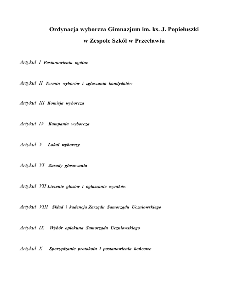 Ordynacja wyborcza SU - Zespół Szkół w Przecławiu