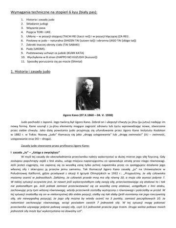 Wymagania techniczne na stopień 6 kyu (biały pas): 1. Historia i