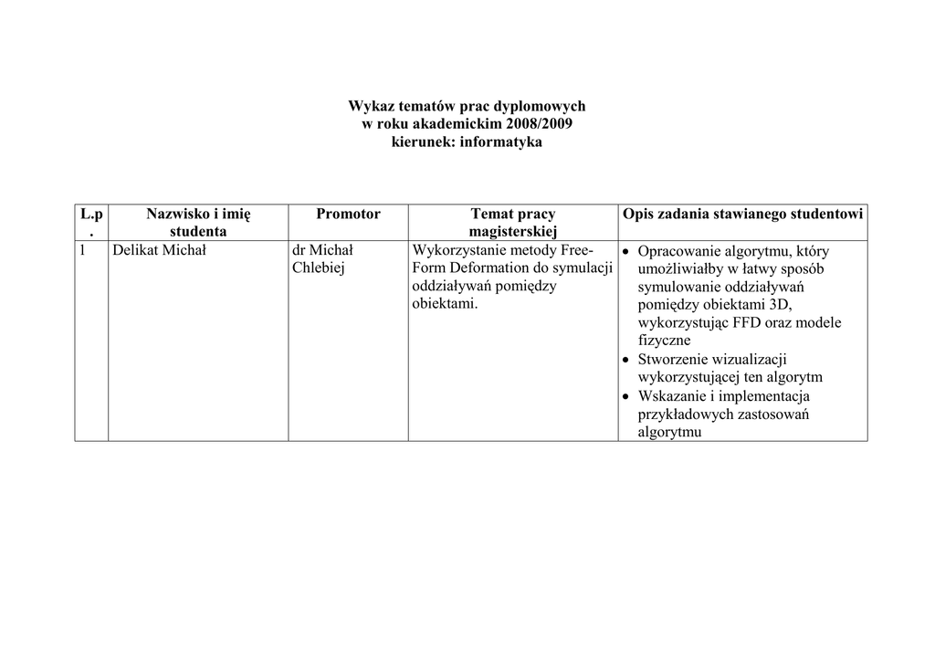 Wykaz tematów prac dyplomowych w roku akademickim 2008/2009