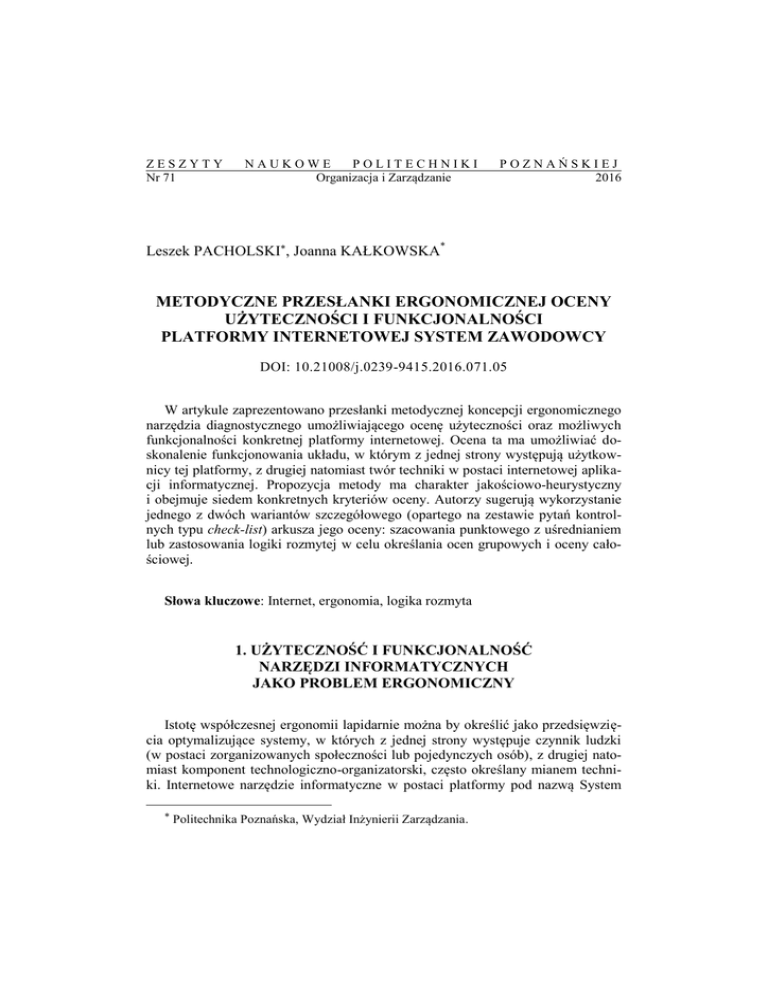 Metodyczne przesłanki ergonomicznej oceny użyteczności i funkcjonalności…