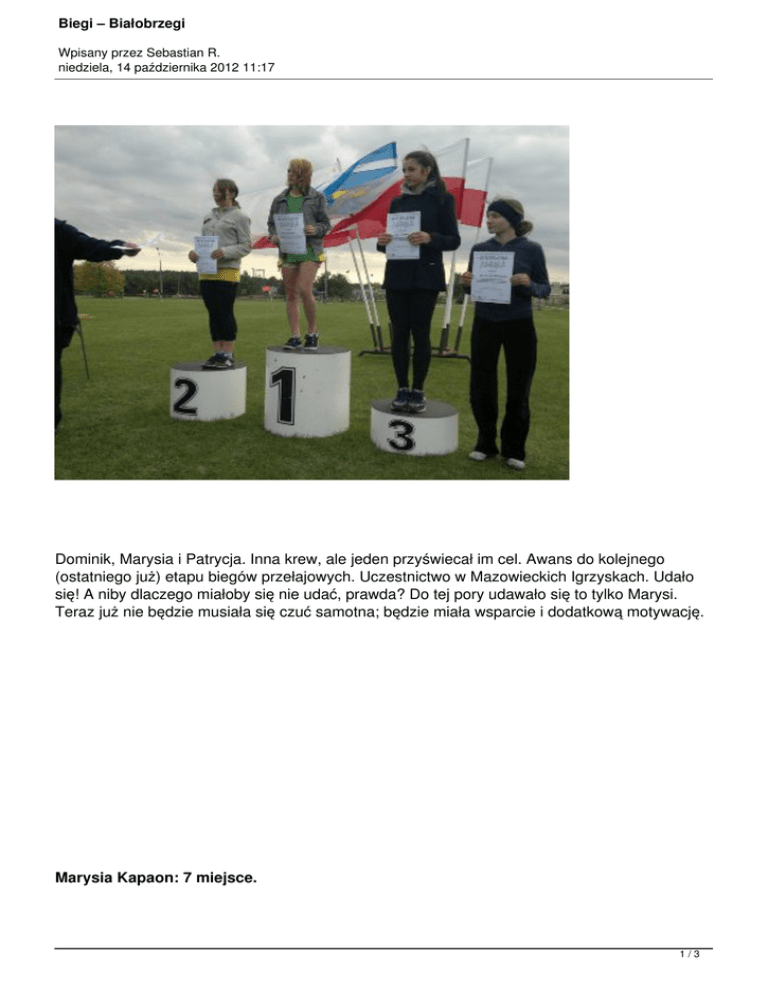 (ostatniego już) etapu biegów przełajowych. Uczestnictwo w Mazowieckich Igrzyskach. Udało