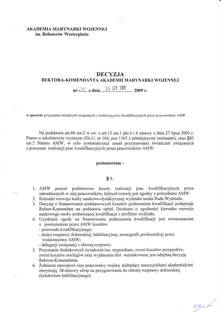 Decyzji Rektora-Komendanta Akademii Marynarki Woj ennej