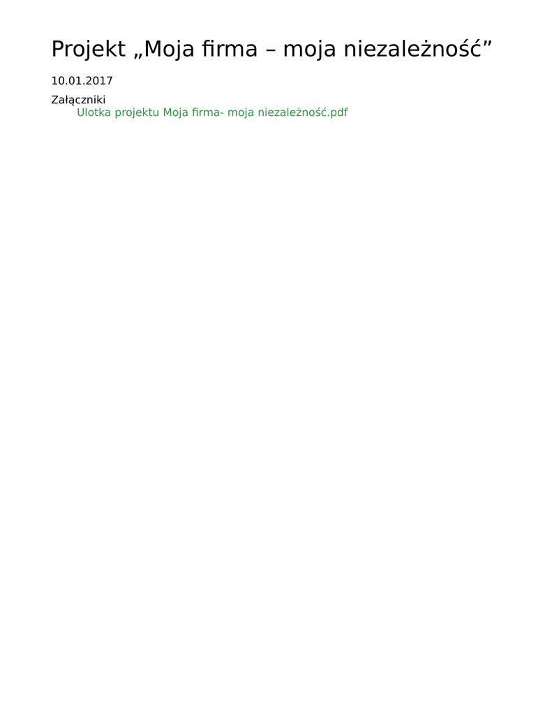 Projekt „Moja firma – moja niezależność” 10.01.2017 Załączniki Ulotka projektu Moja firma- moja niezależność.pdf
