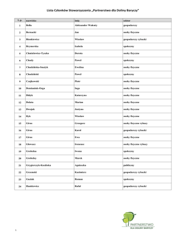 Lista członków Stowarzyszenia Partnerstwo dla Doliny Baryczy