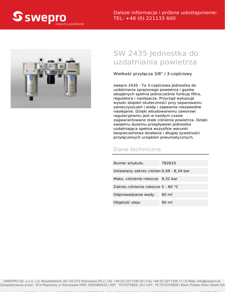 SW 2435 Jednostka do uzdatniania powietrza