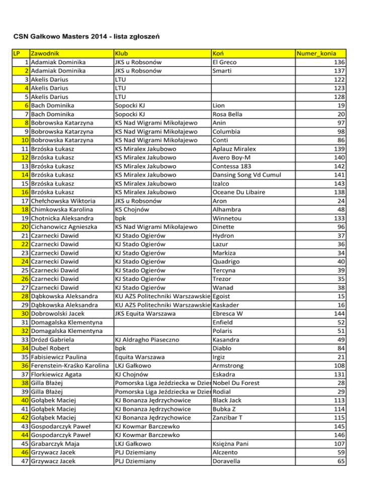 LISTA ZAWODNIKÓW i KONI