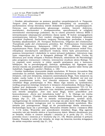 + Orędzie aktualizowane za pomocą parafraz uzupełniających w Targumie.