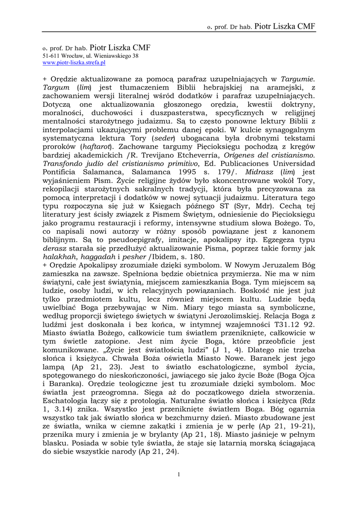 o. prof. Dr hab. Piotr Liszka CMF
