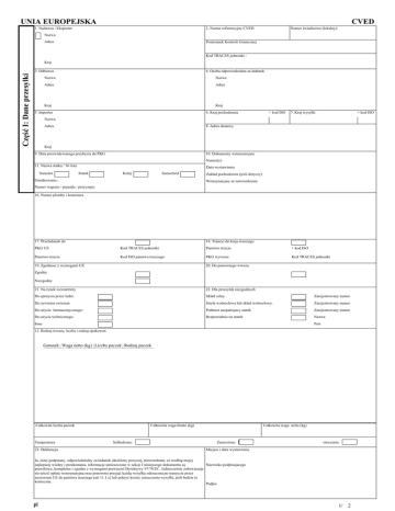 Część I: Dane przesyłki UNIA EUROPEJSKA CVED