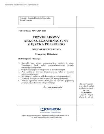 przykładowy arkusz egzaminacyjny z języka polskiego