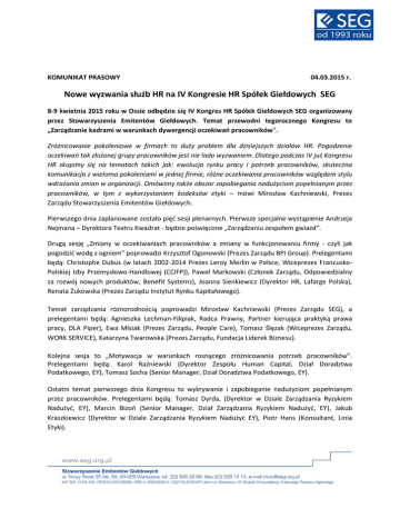 Komunikat prasowy IV Kongres HR Spółek Giełdowych SEG