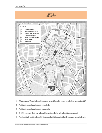 TEST II „KRAKÓW” 1. Z Sukiennic na Wawel odległość na planie