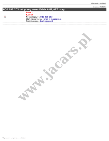 Informacje o produkcie Utworzono 07-03-2017 6Q0 498 203 osł.przeg.zewn.Fabia AME,AZE oryg. Cena : 6,35 zł w w w .ja ca rs .p l Nr katalogowy : 6Q0 498 203 Stan magazynowy : brak w magazynie Średnia ocena : brak recenzji Wygenerowano w programie www.oscGold.com