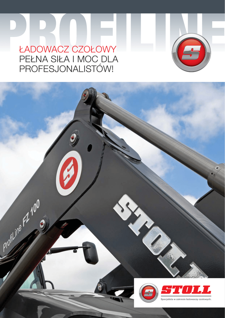 ŁADOWACZ CZOŁOWY PEŁNA SIŁA I MOC DLA PROFESJONALISTÓW! NAJWYŻSZA KLASA Zamontować, rozpocząć pracę i doświadczyć pełnej siły: STOLL ProfiLine zachwyca najlepszymi wartościami we wszystkich dziedzinach i obszarach. Niezależnie od tego, czy to siła udźwigu, wysokość unoszenia, stabilność czy szybkość ładowania: ProfiLine gra w Lidze Mistrzów. Żaden » inny ładowacz czołowy nie jest silniejszy i nie podnosi wyżej niż największy STOLL, czyli ProfiLine FZ 100. « Znana i uznawana wysoka jakość oraz indywidualnie wybierane wyposażenie całej serii ProfiLine pasują perfekcyjnie do wymagań oraz potrzeb rolników i przedsiębiorców wykonujących usługi rolnicze. Te ładowacze czołowe są prawdziwymi profesjonalistami dla profesjonalistów. Mocne, dynamiczne, postępowe i skierowane w przyszłość – ze STOLL ProfiLine, które posiadają ogromną siłę i moc, możecie Państwo naprawdę ciężko pracować. 2 3 5 SIŁA I MOC NIEMIECKIEJ INŻYNIERII Technika motoryzacyjna i lotnicza, budowa maszyn i elektrotechnika – niemiecka sztuka inżynierska jest ceniona na całym świecie za wysoką jakość, sprawność i wydajność: Na niemieckiej inżynierii można polegać. Wszystkie ładowacze czołowe STOLL zostały stworzone i opracowane z wykorzystaniem najlepszej wiedzy technicznej, najlepszego fachowego know-how. Łączą one w sobie najnowszą technologię z innowacyjnymi rozwiązaniami i doskonale spełniają wymagania niemieckiej jakości produktu. Ładowacze czołowe STOLL są w eksploatacji nie tylko szczególnie mocne i solidne, niezawodne oraz wydajne; praca z nimi jest także wygodna, komfortowa i nieskomplikowana. Łatwy montaż i niskie zużycie materiału są typowe dla wszystkich produktów STOLL. Pełna siła i moc - smukła konstrukcja • Ładowacze czołowe ProfiLine FZ wykonane są ze stali drobnoziarnistej – zaleta: wysoka stabilność i sztywność wytrzymałościowa oraz smukła i lekka konstrukcja. • Dźwigar wahacza zostaje wygięty z jednego kawałka stali – w nim ulokowany jest drążek sterujący, a poniżej leżą przewody hydrauliczne. • Masa własna ładowacza czołowego jest niska, a on sam jednak niesamowicie mocny. Mniejsza waga zmniejsza obciążenie ciągnika – nawet on sam wytrzymuje dłużej. Mocowania STOLL – niskie obciążenie ciągnika i wysoka dokładność dopasowania • Mocowania są perfekcyjne do montażu na wszystkich powszechnie stosowanych ciągnikach – dlatego też każdy model ciągnika zostaje wymierzony przez konstruktorów STOLL. • Poprzez optymalnie wypozycjonowanie części mocujących w pobliżu kabiny kierowcy, staje się mniejsze obciążenie przedniej osi. • Nie ma dodatkowego doposażenia – poprzez indywidualne dopasowanie do ciągnika, mocowania pasują idealnie. Kinematyka Z – doskonała widoczność i wysoka wydajność Mocowania leżą blisko kabiny kierowcy – to odciąża przednią oś ciągnika. 4 Przekrój poprzeczny przez dźwigar wahacza – wewnątrz usytuowany jest drążek sterujący, a poniżej leżą przewody hydrauliczne. • Mechaniczne drążki prowadzenia równoległego leżą w dźwigarach wahacza – to podstawa kinematyki Z. • Poprzez to żadne części powyżej wahacza nie zakłócają widoczności kierowcy, a ładowacz czołowy może być zamontowany bliżej kabiny kierowcy – jest to decydujące przy optymalnym umieszczeniu mocowań i dla zmniejszenia obciążenia ciągnika. • Nie ma żadnego ubytku siły udźwigu – wręcz przeciwnie: Ładowacze czołowe z kinematyką Z mają jeszcze większe siły udźwigu i zrywania. 5 1 5 2 MIARA WSZYSTKICH ŁADOWACZY 4 Wysoka klasa na podwórzu: Dużych ciągników ciągle przybywa. Obecnie prawie co piąty nowo dopuszczony do użytkowania ciągnik ma ponad 200 KM. STOLL oferuje zawsze dokładnie dopasowane ładowacze czołowe. wydajność w zakresie siły udźwigu » Najwyższa i wysokości unoszenia. Szczytowe wartości w stabilności i szybkości ładowania. Komfortowy i wygodny w obsłudze: ProfiLine został skonstruowany i opracowany specjalnie dla wszystkich potrzeb profesjonalistów. « Wiele korzyści dla Państwa: ProfiLine pracuje doskonale, jest szczególnie niezawodny, wszechstronny w użytkowaniu i zdaje nawet najtrudniejsze testy. • Różne modele ładowaczy czołowych pasują perfekcyjnie do ciągników od 50 do ponad 300 KM • Najwyższa jakość ze stali drobnoziarnistej dla smukłego ładowacza czołowego poprzez wysoką sztywność wytrzymałościową i stabilność • Imponujące są olbrzymie wartości odnośnie siły udźwigu i wysokości unoszenia • Kinematyka Z i optymalne wypozycjonowanie rury poprzecznej zapewniają doskonałą widoczność na narzędzie robocze • Aby dostać się do przewodów podczas prac konserwacyjnych wystarcza standardowy i powszechnie stosowany klucz płaski • Najlepsze wyposażenie w opcjonalne dodatki specjalne dla jeszcze bardziej wydajniejszej i usprawnionej pracy: Return-to-Level, szybkie opróżnianie albo funkcja nagarniania • W zależności od modelu ładowacza dostępne są ramy szybkiej wymiany dla innych systemów łączenia – STOLL zapewnia pełną elastyczność 6 1 Szeroko tulejowane łożyskowanie ruchomych części z łatwo dostępnymi od zewnątrz punktami smarowania 2 Szybkie - tylko w dwie minuty - dołączanie i odłączanie poprzez sprawdzony system najazdowy STOLL 3 Wszystkie przewody hydrauliczne leżą pod dźwigarem wahacza – dla dobrej ochrony i dobrej widoczności 3 4 Działające dwukierunkowo siłowniki ładowacza dla szczególnie wysokich wartości mocy podnoszenia 5 Kinematyka Z zezwala na widok na narzędzie robocze i zapewnia jeszcze większe siły udźwigu 6 7 8 6 Rura poprzeczna jest optymalnie umiejscowiona – dla najlepszego widoku i ochrony przednich przewodów hydraulicznych Bezpieczny i niezawodny system odstawiania z łatwą obsługą - całkowicie bez narzędzi 7 Rama szybkiej wymiany Euro do doł