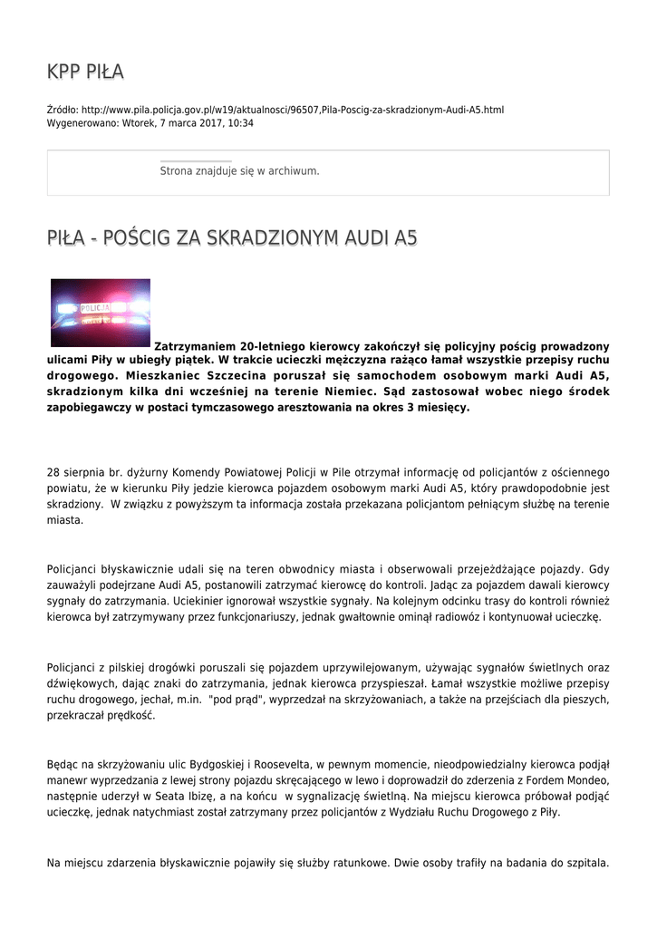 KPP PIŁA PIŁA - POŚCIG ZA SKRADZIONYM AUDI A5