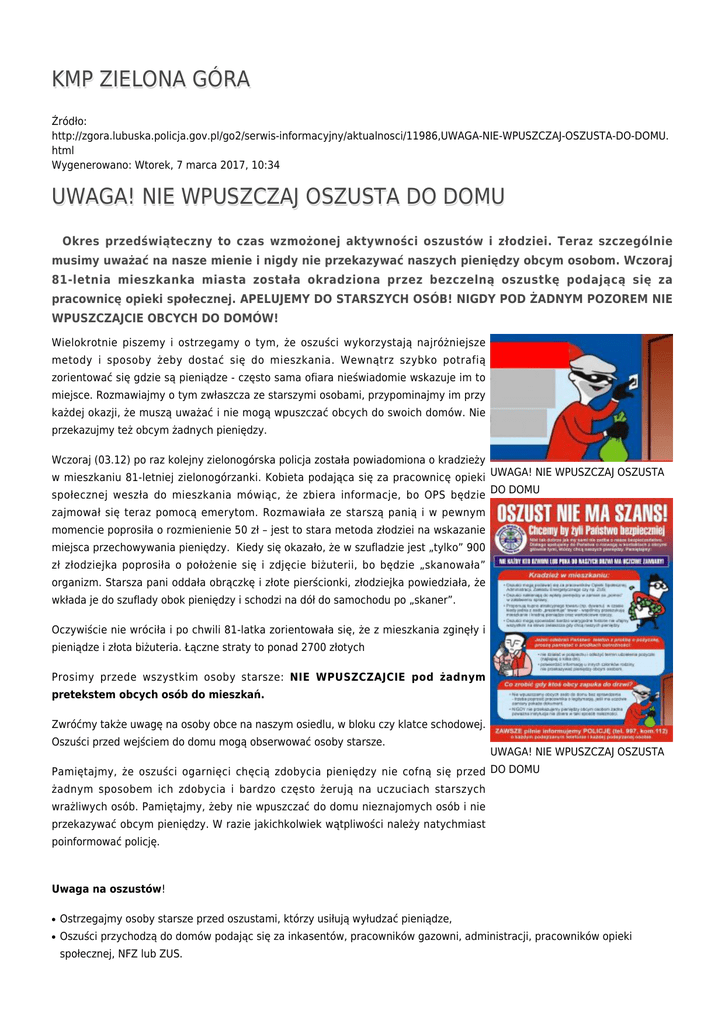 kmp zielona góra uwaga! nie wpuszczaj oszusta do domu