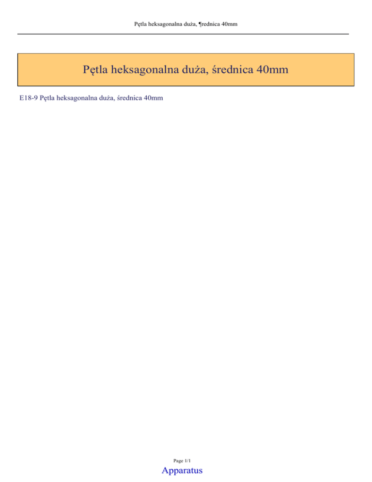Pętla heksagonalna duża, ¶rednica 40mm Pętla heksagonalna duża, średnica 40mm E18-9 Pętla heksagonalna duża, średnica 40mm Page 1/1 Apparatus