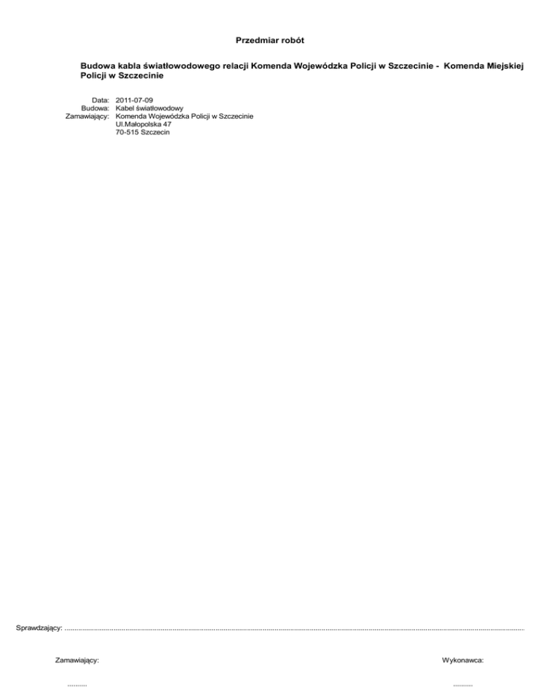 Przedmiar robót Budowa kabla światłowodowego relacji Komenda