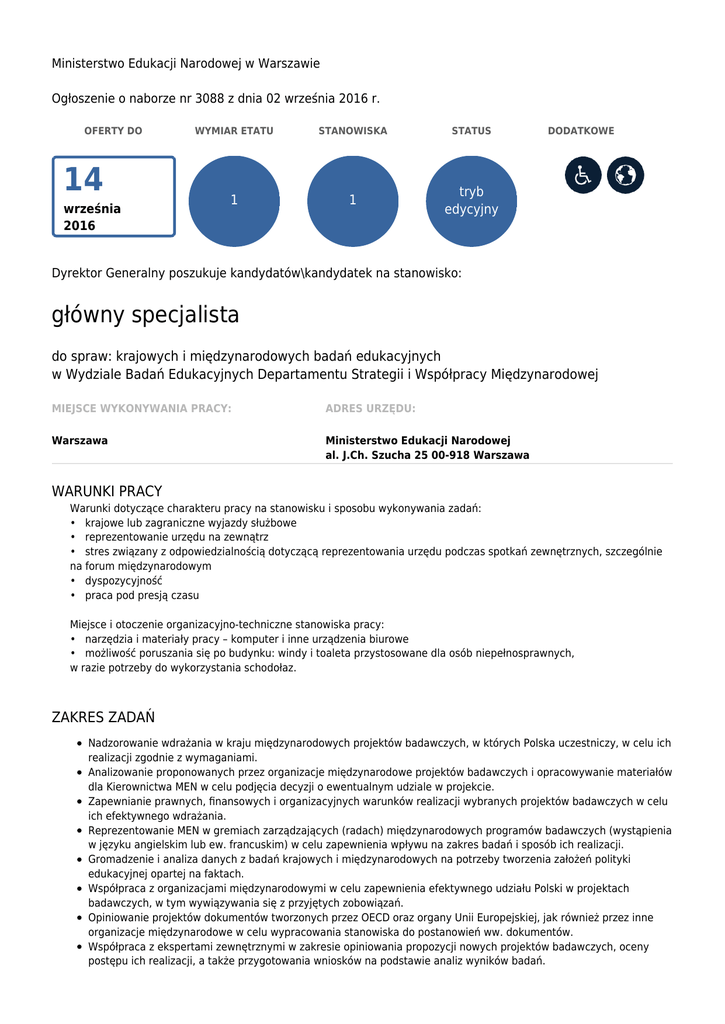 główny specjalista - BIP MEN - Ministerstwo Edukacji Narodowej