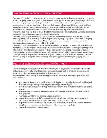 OGÓLNE WIADOMOŚCI O CZUJNIKACH DYMU Detektory (czujniki