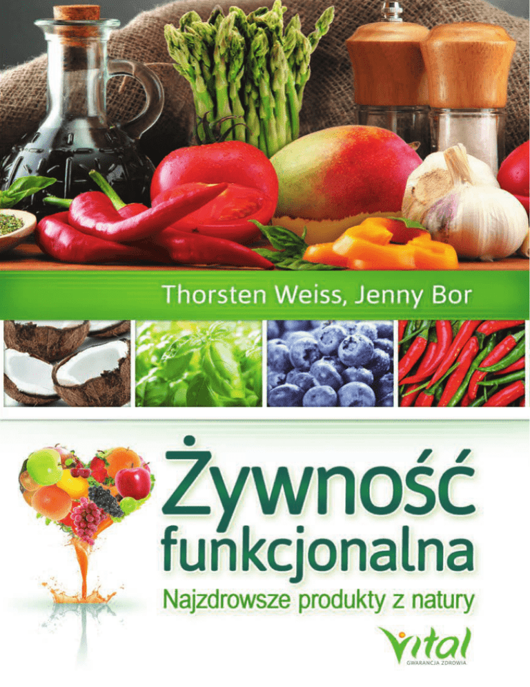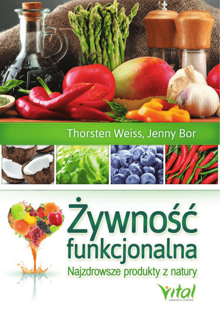 Autorzy tej książki są pasjonatami superżywności. Posługując się własnym wyczuciem, zainteresowali się tym cudownym tematem i dzięki temu osiągnęli duże korzyści dla swojego własnego stylu życia, zdrowia i rozwoju osobistego oraz duchowego. Jenny Bor i Thorsten Weiss z dużą pieczołowitością zestawili treści w tej książce, by wesprzeć świadomych ludzi w zmianie ich stylu odżywiania. Jednak ani autorzy, ani wydawnictwo nie dają gwarancji, nie mogą ręczyć ani być pociągniętymi do odpowiedzialności za skutki wykorzystania przedstawionych tu informacji i przepisów na sytuację fizyczną, psychiczną i medyczną. Ta książka i zawarte w niej idee dotyczące odżywiania nie są żadnym zastępstwem dla profesjonalnej pomocy medycznej. W przypadku wystąpienia poważnych symptomów należy zawsze kontaktować się z lekarzem. Wszystkie przedstawione tu przepisy i opisy poszczególnych produktów spożywczych, które wskazują na uzdrowienia, wyzdrowienia i poprawę stanu, bazują na doświadczeniach autorów. Działanie na ciało może być różne, więc odpowiedzialność spoczywa na czytelniku, który sam musi ocenić, w jakim stopniu zawarte w tej książce informacje mogą być przełożone na jego osobisty sposób odżywiania. Nie zawsze podane działanie jest dowiedzione naukowo lub uznane przez ustawodawcę. Redakcja: Irena Kloskowska Skład: Iga Maliszewska Projekt okładki: Piotr Pisiak Tłumaczenie: Kamila Petrikowska Korekta: Anna Lisiecka Wydanie I BIAŁYSTOK 2015 ISBN 978-83-64278-74-7 Copyright © 2013 Schirner Verlag, Darmstadt, Germany Original Title: Super Foods Iss dich vital, gesund und schon © Copyright for the Polish edition by Wydawnictwo Vital, Białystok 2015 All rights reserved, including the right of reproduction in whole or in part in any form. Wszelkie prawa zastrzeżone. Żadna część tej publikacji nie może być powielana ani rozpowszechniana za pomocą urządzeń elektronicznych, mechanicznych, kopiujących, nagrywających i innych bez pisemnej zgody posiadaczy praw autorskich. 15-762 Białystok ul. Antoniuk Fabr. 55/24 85 662 92 67 – redakcja 85 654 78 06 – sekretariat 85 653 13 03 – dział handlowy – hurt 85 654 78 35 – www.vitalni24.pl – detal strona wydawnictwa: www.wydawnictwovital.pl sklep firmowy: Białystok, ul. Antoniuk Fabr. 55/20 Więcej informacji znajdziesz na portalu www.odzywianie24.pl PRINTED IN POLAND Spis treści Część 1 Wstęp.....................................................................................11 Nadszedł czas rozwiązań.........................................................13 Jesteś tym, co jesz...................................................................17 Dlaczego superżywność?.........................................................21 Co jest superżywnością, a co nie?............................................23 Uzdrawiająca siła enzymów w surowym pożywieniu...............25 Superżywność – najlepsze źródło enzymów.............................27 Jedz jak szympans...................................................................29 Czy surowe jedzenie nie jest za zimne?....................................31 Jelito nie ma zębów................................................................35 Część 2 Przepisy do wykorzystania......................................................37 Urządzenia i akcesoria do przygotowywania żywności.............39 Zasadowa superżywność...................................................... 43 Surowe kakao......................................................................43 Otręby ryżowe i zawarte w nich proteiny.............................45 Palma kokosowa..................................................................47 Konopie..............................................................................52 Bardzo zielone...................................................................... 55 Moringa – cudowne drzewo................................................55 Spirulina..............................................................................59 Chlorella.............................................................................61 Trawa pszeniczna i jęczmienna.............................................63 Fitoplankton morski – prasiła z morza.................................64 Kiełki – eksplozja życiodajnej substancji dla zachowania młodości.....................................................66 Superzioła............................................................................69 Pokrzywa – odkryj ją na nowo!............................................69 Rumianek – słoneczne ziele.................................................71 Miłorząb dwuklapowy (Ginko biloba) – na dobrą pamięć... 72 Supernasiona........................................................................75 Chia – ziarna mocy..............................................................75 Siemię lniane.......................................................................77 Superowoce..........................................................................81 Goji – jagody szczęścia.........................................................81 Jagody acai – dodający sił owoc mocy..................................82 Jagody schizandry................................................................84 Jagody camu camu – bomba witaminy C............................86 Czarne jagody......................................................................87 Awokado.............................................................................89 Granat.................................................................................90 Papaja – czarodziejski owoc.................................................92 Noni – superowoc z dalekiej Azji.........................................94 Baobab................................................................................95 Aloes.......