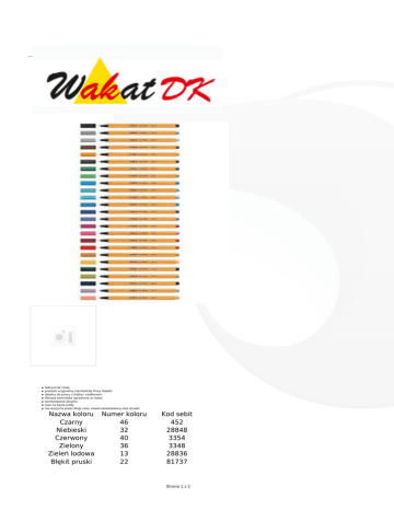 Nazwa koloru Numer koloru Kod sebit Czarny 46 452 Niebieski 32