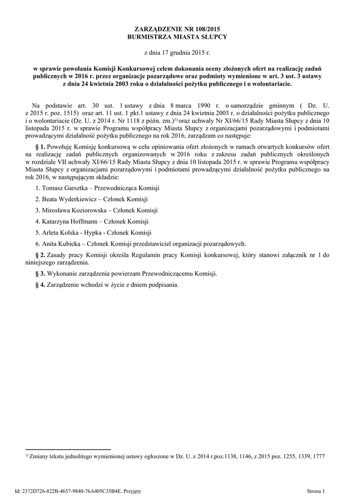 Zarzadzenie Nr 108/2015 z dnia 17 grudnia 2015 r.