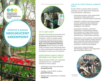 GCEF at the Go Green! Greenpoint Festival JAK DO TEJ PORY DZIAŁAŁ FUNDUSZ GCEF? Fundusz GCEF to program dotacji nieustannie angażujący członków społeczności Greeinpontu w swoją działalność. Obejmuje to: • opracowanie programu, który odzwierciedla priorytetowe kwestie społeczności Greeinpointu w zakresie poprawy środowiska, • zabieganie o składanie propozycji projektów przez jak największą liczbę mieszkańców Greeinpointu oraz organizacji i instytucji działających w tej dzielnicy, INWESTUJE W BARDZIEJ EKOLOGICZNY GREENPOINT CO TO JEST GCEF? Greenpoint Community Environmental Fund (Fundusz Ochrony Środowiska Dzielnicy Greenpoint - GCEF) to program dotacji na ochronę środowiska utworzony przez Urząd Prokuratora Generalnego Stanu Nowy Jork oraz Departament Ochrony Środowiska. Środki finansowe dla GCEF zostały pozyskane przez administrację Stanu w ramach odszkodowania wypłaconego przez ExxonMobil za wyciek ropy na Grrenponcie. • zapewnianie warsztatów, seminariów internetowych, indywidualnego wsparcia technicznego oraz innego rodzaju pomocy potencjalnym wnioskodawcom w procesie opracowywania i udoskonalania propozycji, • dokonywanie oceny wniosków, w trakcie której wyłonione zostają najlepsze projekty poprawy stanu środowiska i która daje mieszkańcom Greenpointu możliwość wyrażenia swoich preferencji w kwestii tychże projektów, • nadzorowanie realizacji każdego finansowanego projektu w celu zapewnienia jego pomyślnego zakończenia. GDZIE MOŻNA ZDOBYĆ WIĘCEJ INFORMACJI NA TEMAT GCEF? Więcej informacji o GCEF oraz o sposobach zaangażowania się w „zazielenianie” Greenpointu można uzyskać: • odwiedzając naszą stronę internetową: www.gcefund.org • wysyłając e-mail do GCEF na adres: [email protected] • śledząc kolejne uaktualnienia na Twitterze: @GCEFund For the Birds! Greenpoint CEL GCEF Celem GCEF jest zapewnienie istotnych ulepszeń w sferze ochrony środowiska w dzielnicy Greenpoint, a dokładnie: • wspieranie projektów rozwiązujących priorytetowe kwestie ekologiczne środowiska, takich jak poprawa jakości powietrza, wody pitnej, wody gruntowej, tworzenie i powiększanie przestrzeni otwartych, zmniejszanie toksycznego zanieczyszczenia powietrza; • zaangażowanie i współpraca ze społecznością Greenpointu w jawnym i obiektywnym procesie przyznawania dotacji, który zapewnia tej społeczności bezpośredni nieustający udział w kierowaniu rozwojem GCEF i wprowadzaniu w życie jego celów. Java Street Community Garden W JAKI SPOSÓB ZARZĄDZANO DO TEJ PORY FUNDUSZEM GCEF? Funduszem GCEF zarządzają z ramienia administracji Stanu współpracujące ze sobą organizacje: National Fish and Wildlife Foundation (NFWF) oraz Greenpoint-based North Brooklyn Development Corporation (NBDC) z siedzibą na Greenpoincie. Administracja GCEF została wybrana przez władze Stanu w drodze konkursu. JAK SPOŁECZNOŚĆ GREENPOINTU BYŁA DOTYCHCZAS ANGAŻOWANA W REALIZACJĘ PROGRAMU GCEF? Fundusz GCEF nie tylko niestrudzenie udziela społeczności Greenpointu informacji na temat programu dotacji, lecz również zachęca ją do aktywnego uczestnictwa w nim i umożliwia je. W tym celu Fundusz GCEF: • polegał na Community Advisory Panel (CAP - Panel Doradczy Społeczności Greenpointu) – grupie złożonej z mieszkańców Greenpointu, przedstawicieli lokalnych organizacji i wybranych w wyborach urzędników – w kwestii utrzymywania bezpośredniego i stałego kontaku z administracją stanową i odgrywania głównej roli w kierowaniu rozwojem GCEF i wprowadzaniu w życie jego celów, • prowadził imprezy w sprawie wyboru preferencji, dając mieszkańcom Greenpointu możliwość poparcia projektów poprawy stanu środowiska, których realizację chcieliby zobaczyć w swojej dzielnicy, • organizował spotkania, warsztaty i inne fora w celu omówienia Funduszu GCEF ze społecznością, udzielenia pomocy potencjalnym lokalnym wnioskodawcom o dotacje oraz zebrania uwag mieszkańców W sumie fudusz GCEF na temat wdrażania zainwestował ponad programu w życie, • utrzymywał stronę internetową dla programu, którą regularnie uzupełnia o informacje na temat GCEF, jego postępów i osiągnięć, 54.000.000 USD w priorytetowe kwestie poprawy stanu środowiska na Greenpoincie! • wykorzystywał obszerną listę kontaktów i partnerów do wysyłania e-maili oraz media społecznościowe w celu przekazywania tysiącom mieszkańców Greenpointu aktualnych informacji na temat programu. Wraz z zakończeniem przyznawania dotacji, Fundusz GCEF koncentruje się obecnie na nadzorowaniu realizacji każdego finansowanego projektu w celu zapewnienia jego pomyślnego zakończenia. OSIĄGNIĘCIA GCEF Fundusz GCEF zakończył przyznawanie dotacji w 2015 r. W sumie w ramach programu przyznano: • 1.352.244 USD w formie małych dotacji (od 5.000 USD do 100.000 USD) – i pozyskał kolejnych 689.065 USD środków współfinansujących zapewnionych przez odbiorców dotacji – dla 35 projektów rowiązujących priorytetowe kwestie poprawy stanu środowiska na Greenpoincie, obejmująych zwiększenie powierzchni przestrzeni otwartych, zazielenianie okolicy, edukację ekologiczną i odpowiedzialne zarządzanie środowiskiem; • 15,5 miliona USD w formie dużych dotacji i dotacji na rzecz dziedzictwa naturalnego (od 101.000 USD do 5 milionów USD) – i pozyskał kolejne 36,9 miliona USD środków współfinansujących zapewnionych przez odbiorców dotacji – dla 11 projektów, obejmujących utworzenie centrum edukacji ekologicznej w dzielnicowej bibliotece Greenpoint Library, kampanię walki ze śmieciami w okolicy, program promujący idpowiedzialne zarządzanie parkami Greenpointu oraz stworzenie naturalnego siedliska wzdłuż Newtown Creek. Te 11 projektów zdobyło najwięcej głosów na zorganizowanych przez Fundusz GCEF spotkaniach społecznościowych w sprawie „wyboru preferencji”.