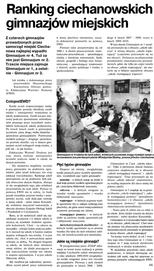 Tygodnik Ciechanowski - Gimnazjum z Oddziałami Integracyjnymi