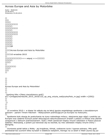 gościem - panem Timem Patchem - Walijczykiem podróżującym po Europie na motocyklu.