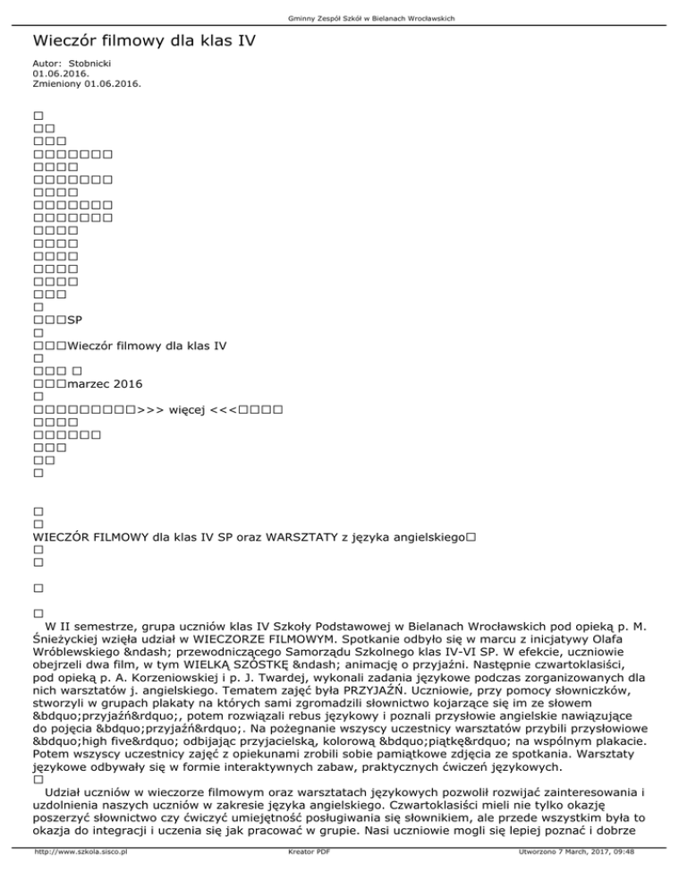 Wieczór filmowy dla klas IV - Gminny Zespół Szkół w Bielanach